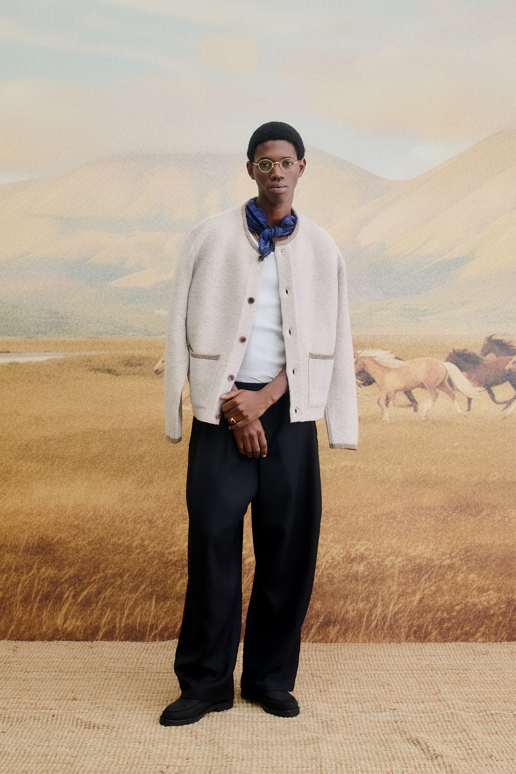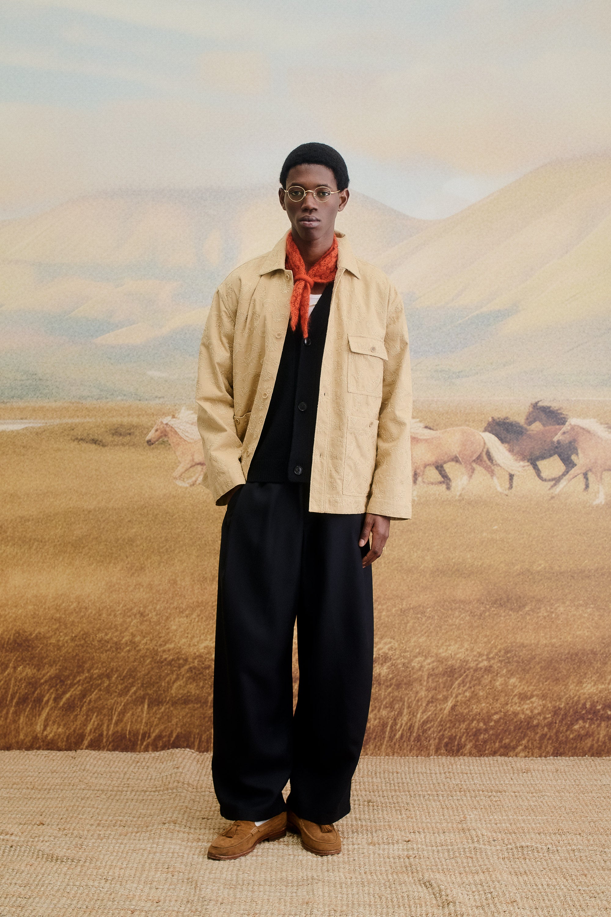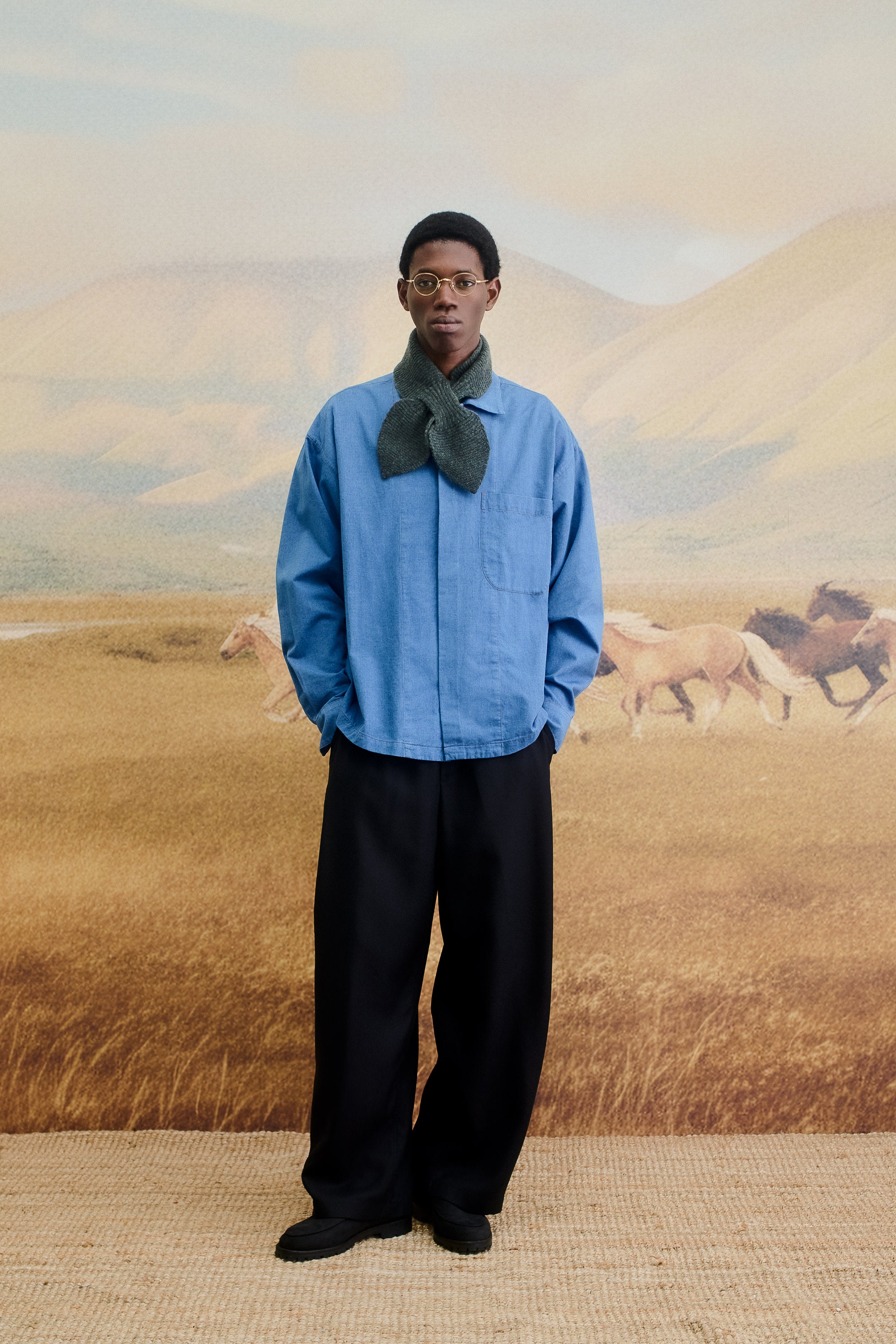 After a year shaped by diverse inspirations, from remote landscapes to the quiet beauty of everyday life, this capsule reflects a moment of pause and refinement.It celebrates the colder months ahead with a curated selection of outerwear, knitwear, accessories, and crafted objects that embrace warmth, texture, and quiet sophistication. The Capsule serves as a gentle reminder of the year’s journey, merging craftsmanship and comfort into timeless winter staples. Each piece is a daily companion in the art of slowing down, a guardian of the inner peace, needed to move through the world with primal ease. Throughout our journeys we documented color patterns, that we carefully weaved into the AW25 Holiday capsule. The deep, resonant brown of thawed earth. The quiet beige of dried winter grass. The dark, earthy green of hardy steppe flora, punctuated by the sage that persists in sheltered places. A jolt of cobalt blue in a twilight sky, a shock of deep burgundy like a wildflower. This is not a color story we invented. It is one we witnessed.