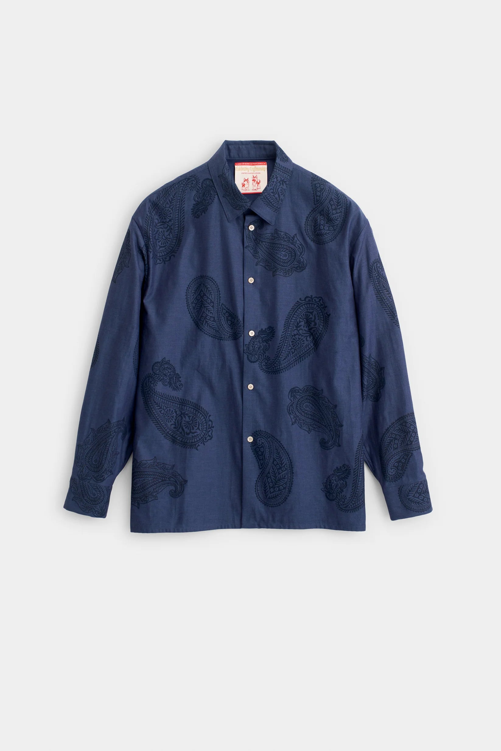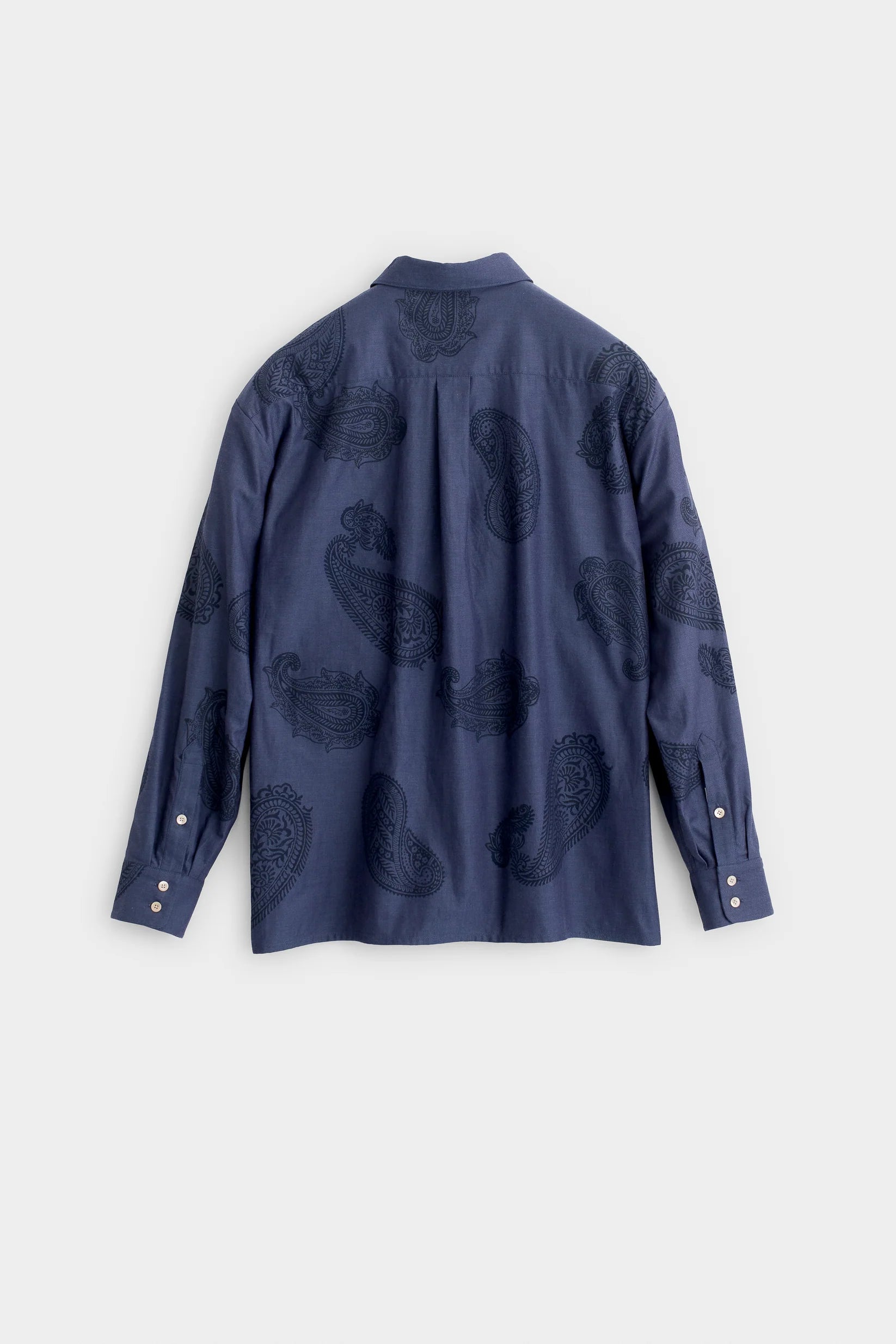 We have evolved the concept of our signature Derbin shirt. The foundation remains, the slightly oversized, effortless silhouette cut from a substantial Spanish cotton twill, the classic collar, the straight hem. These are the tenets of timeless ease. But we sought to breathe a new, artisanal spirit into its very skin. The evolution is in the print.We entrusted the fabric to a hand-printing process in Germany, applying a rich paisley pattern not with a machine, but block by deliberate block. This manual technique imparts a depth and character that industrial methods cannot replicate. Each press of the block is unique, resulting in subtle variations in saturation and density, a signature of human craftsmanship.