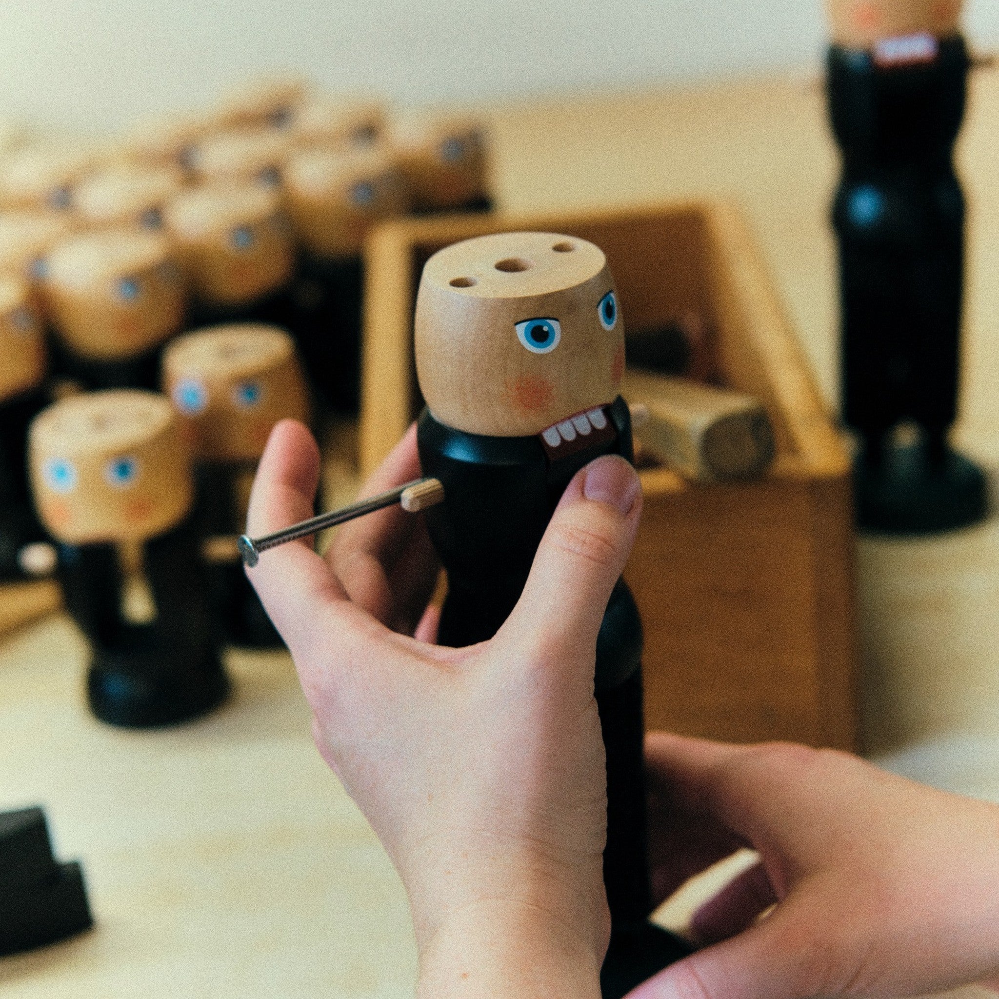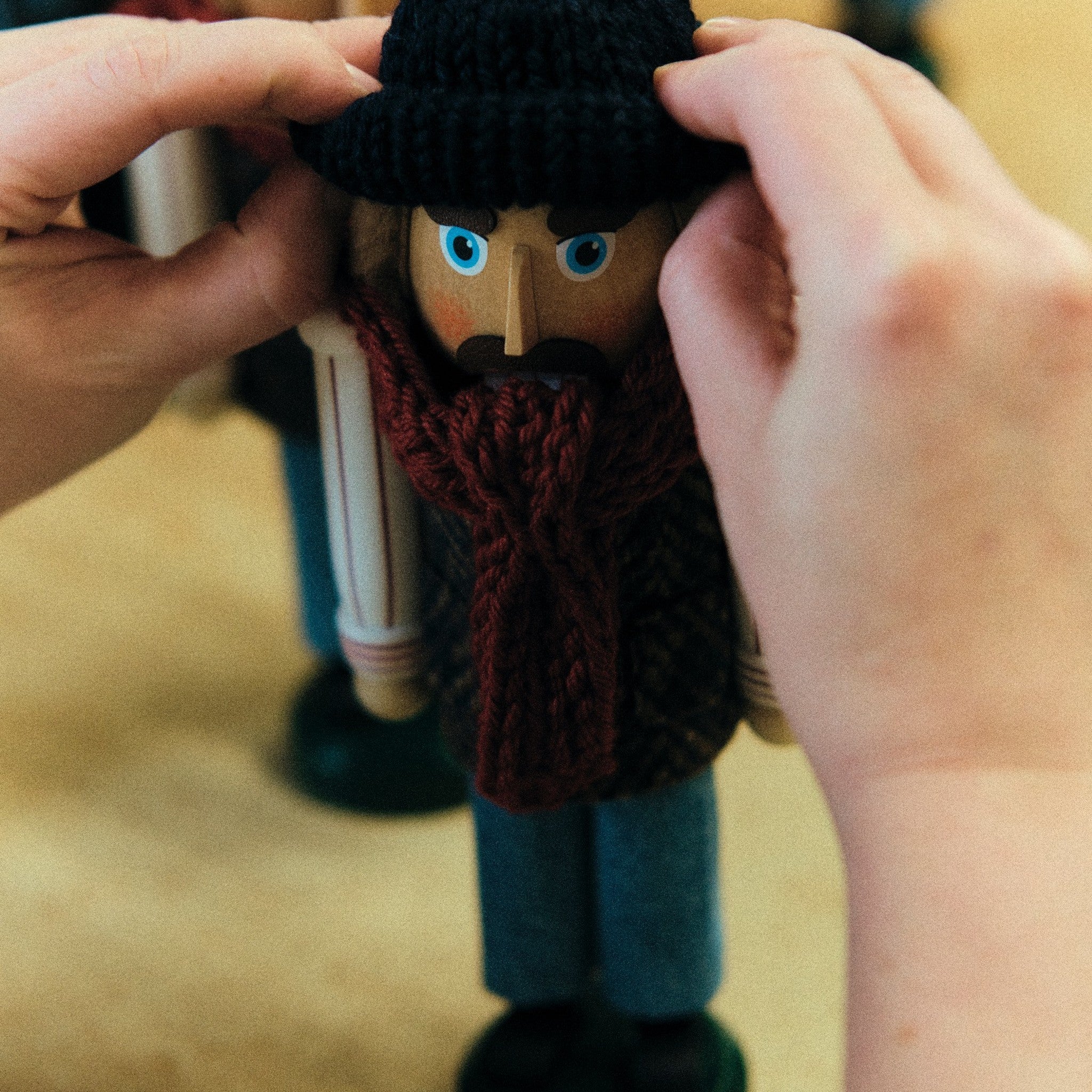 Born in the hills of the Erzgebirge (UNESCO-listed cultural landscape shaped by centuries of craftsmanship), our AKOG Nutcracker is an artisanal, handcrafted piece that carries forward centuries-old craftsmanship. Its miniature garments are tailored from original collection fabrics, complemented by hand-knit accessories that dress this 25 cm figure with AKOG character. Each detail, polished, tailored, and intentionally placed, celebrates a dialogue between heritage and artistry, resulting in a bespoke figure that feels both timeless and lovingly reimagined.