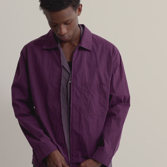 PRODUCT: The Alvaro Atelier Shirt is a loosely fitted overshirt, ideal for layering. It features an overcut shoulder, spread collar, two-way zipper, rounded hem, front patch pocket, and press-buttons at the adjustable cuffs.