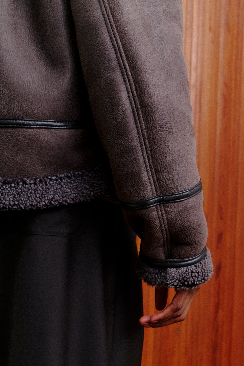 Introducing the Arequipa Jacket – a masterpiece of craftsmanship and thoughtful design. Crafted from luxurious lambskin tanned in Germany, it features a soft wool interior for warmth and a sleek nappa exterior for a refined finish. The relaxed fit, slightly dropped shoulders, and foldable sleeves offer effortless versatility, while the bold oversized collar adds a striking touch. Equipped with a two-way front zip and spacious front pockets, the Arequipa Jacket combines elegance and practicality in every detail.