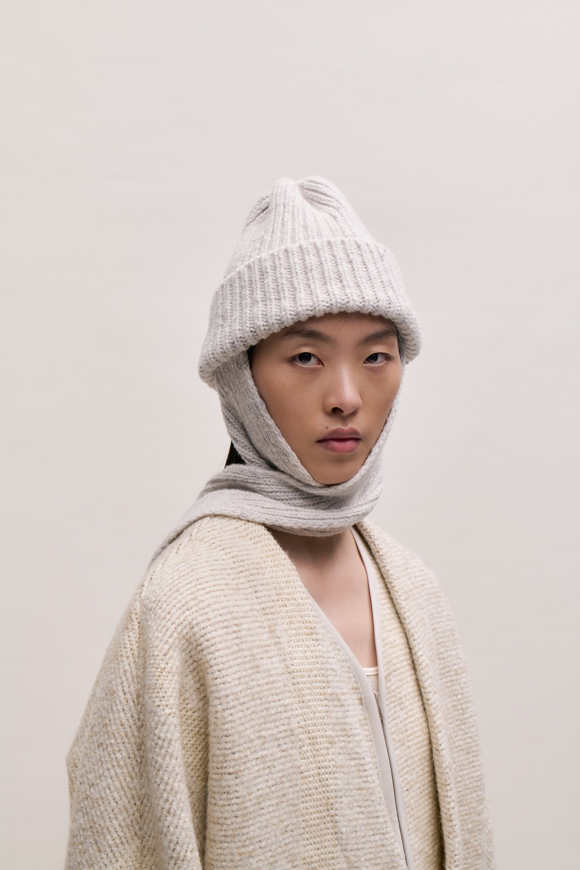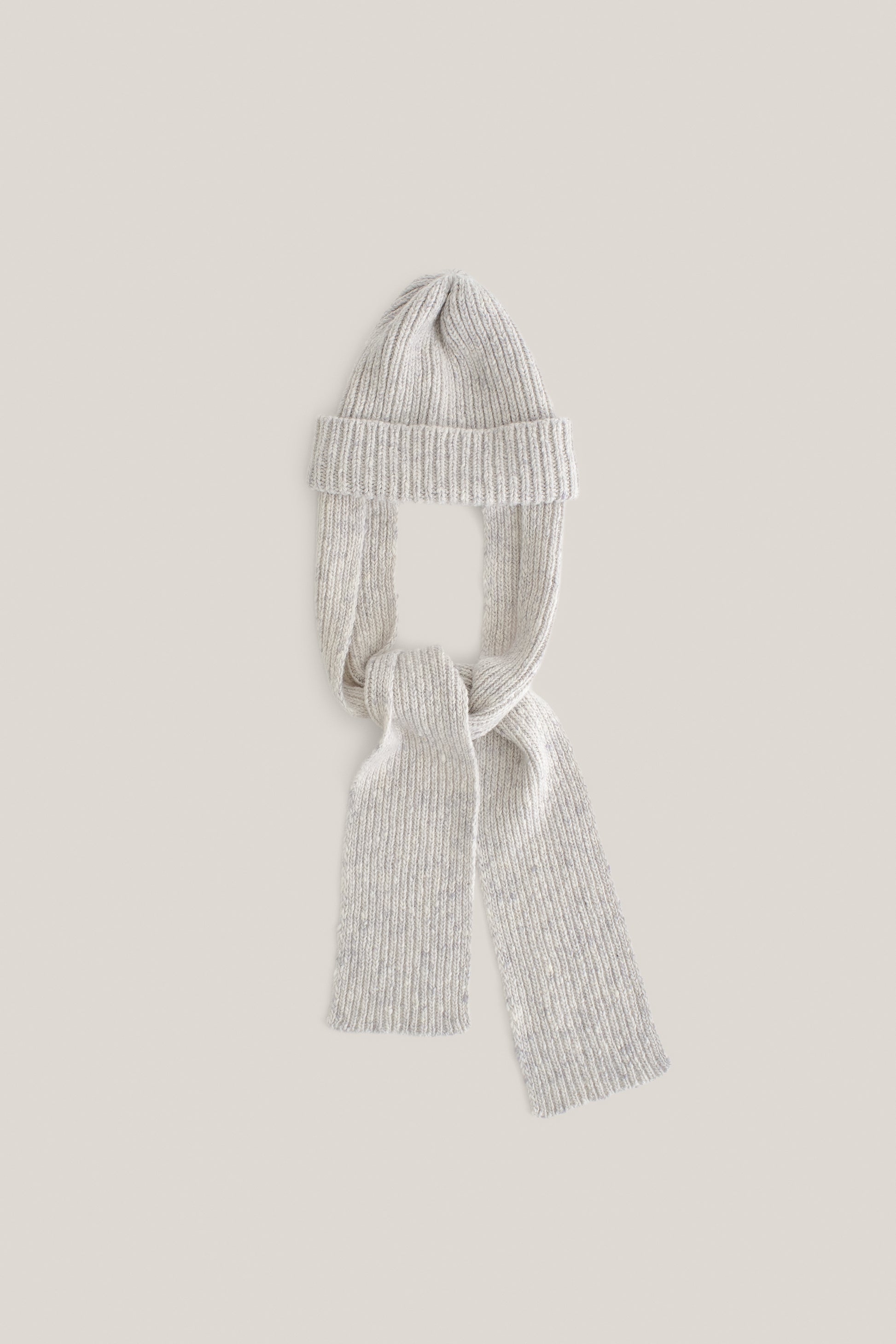 PRODUCT: An evolution of our favorite Allen Beanie, this updated version features long, soft knitted straps that double as a cozy scarf. Combining practicality with style, it offers both warmth and versatility, making it an ideal accessory for colder days.