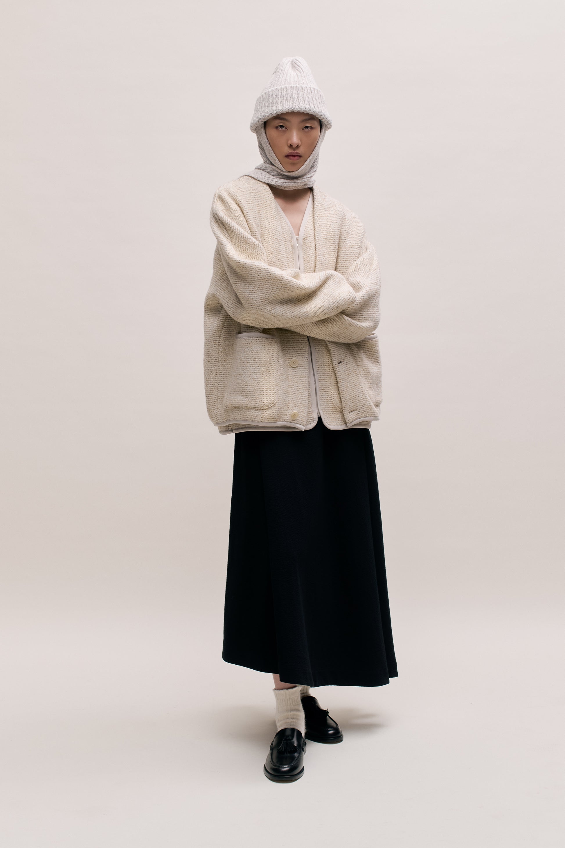 YARN: A cashmere blend yarn, soft to the touch with a subtle tweed effect. Spun in Italy to deliver a refined texture and exceptional quality.