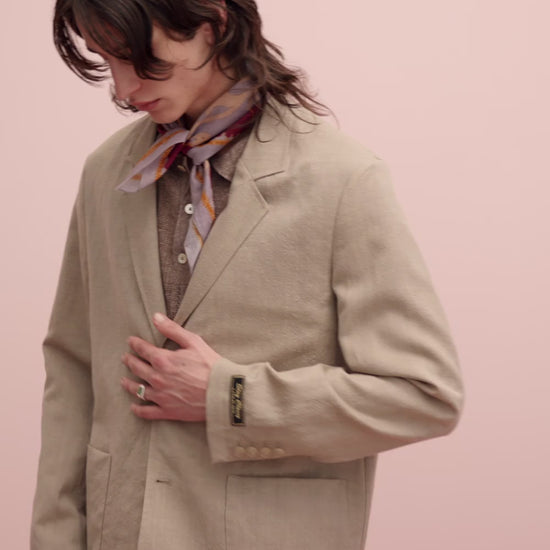 PRODUCT: The Bali Bandana in Poppy Paradise features a bright in-house floral pattern printed on a light cotton base. Its square cut and soft drape allow for multiple styling options. The vibrant character of the motif contrasts with the simplicity of the format, making it a flexible and expressive accessory.