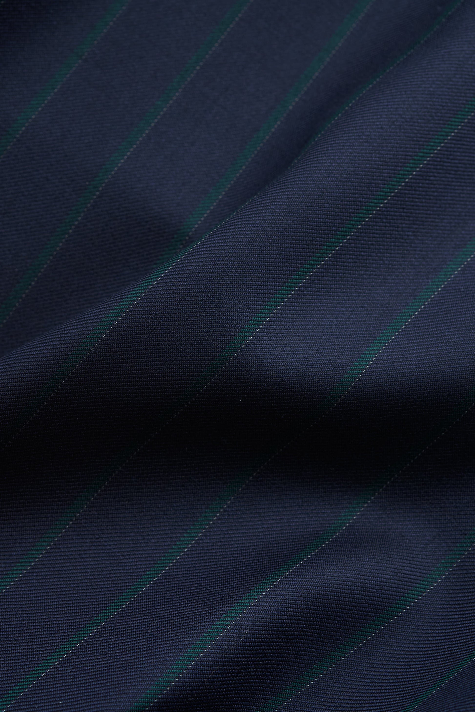 FABRIC: A virgin wool fabric with a smooth, cool hand and a subtle double pinstripe. The understated pattern and refined structure combine with an easy-care composition for practical elegance.
