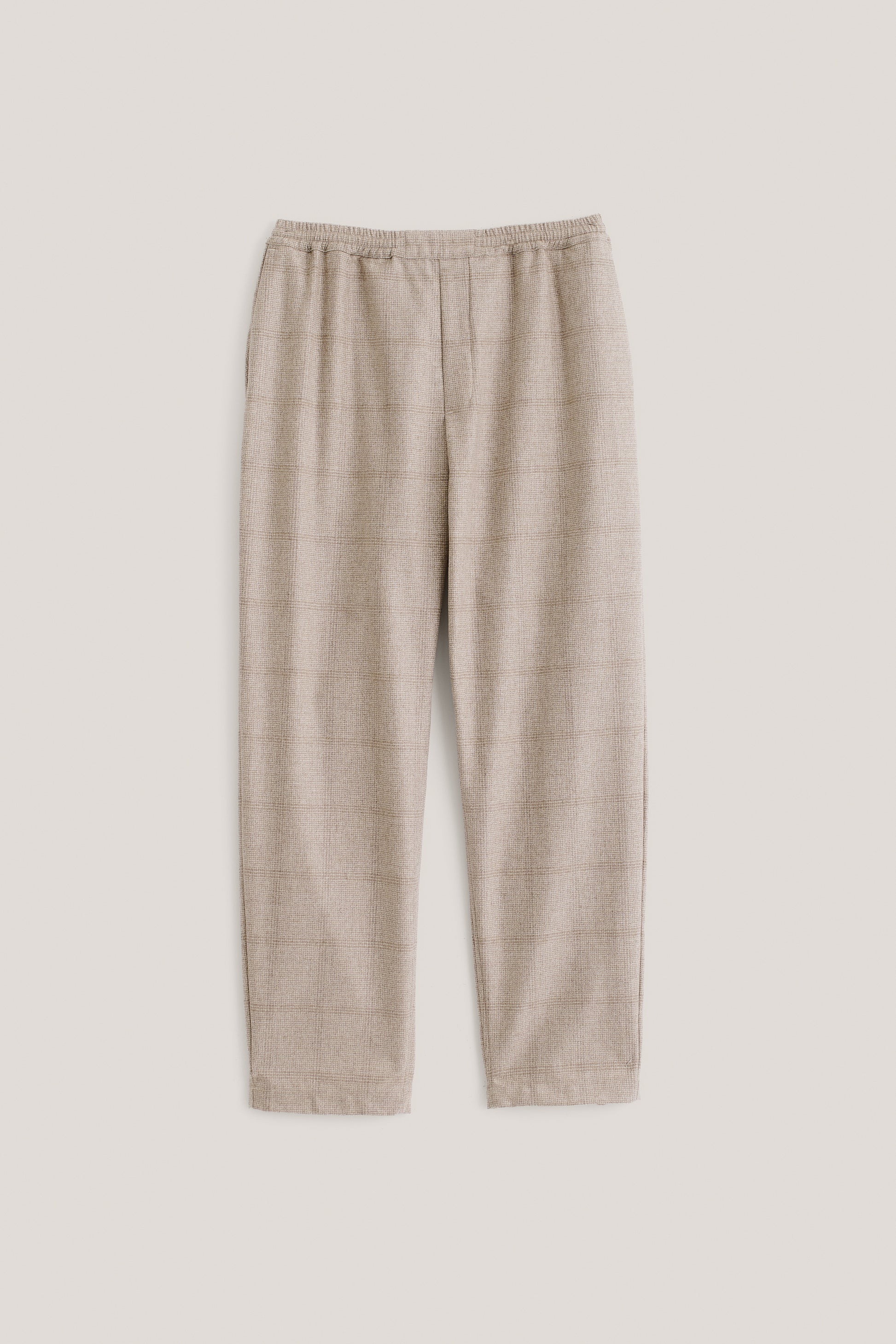 FABRIC: A virgin wool flannel fabric with a soft, warm handfeel and a classic glencheck pattern. The brushed surface adds a touch of coziness to its refined, tailored look.