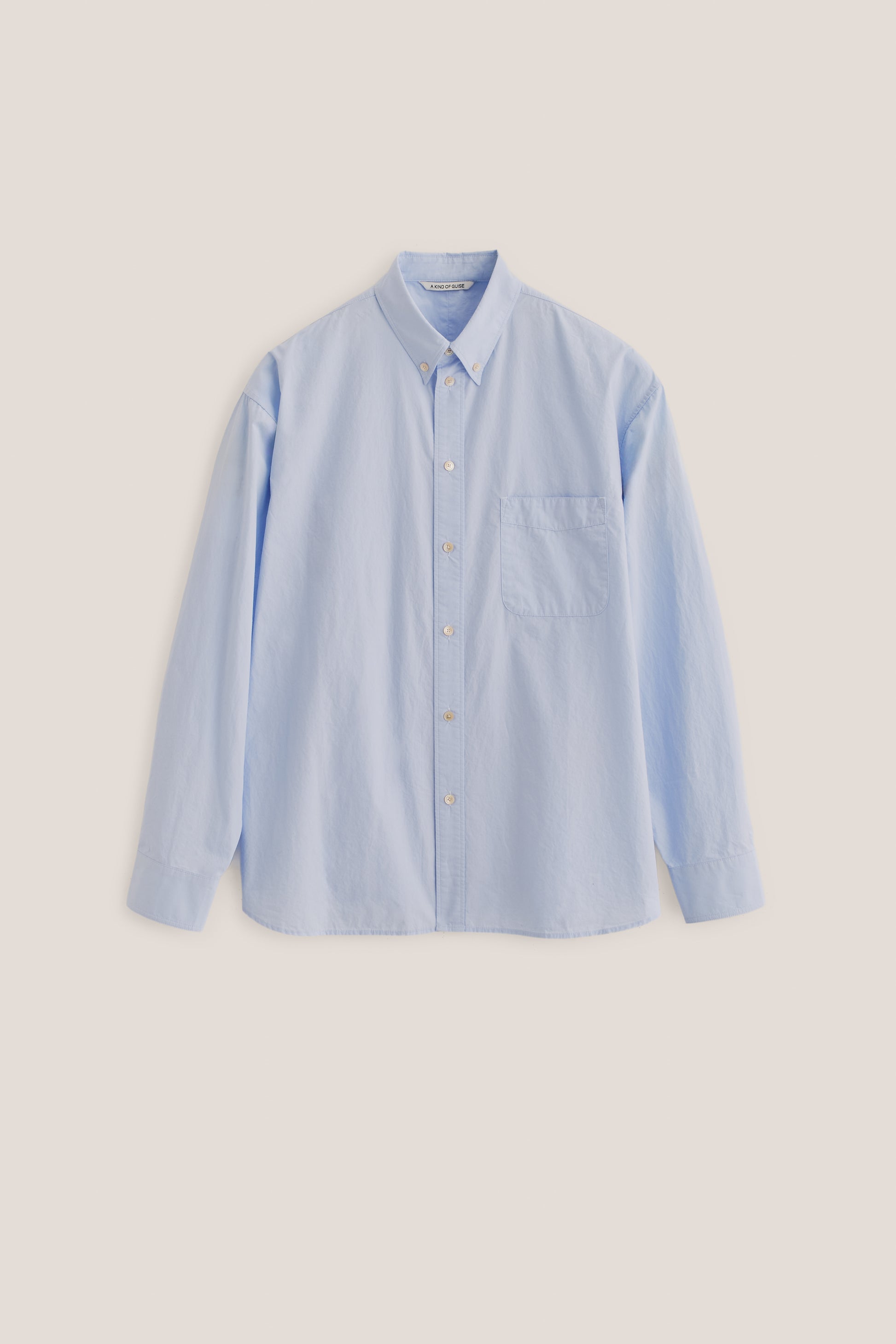 PRODUCT: The Banita Button Down Shirt is an oversized, vintage-inspired button-down featuring a curved hemline, patch pocket, and adjustable cuffs.