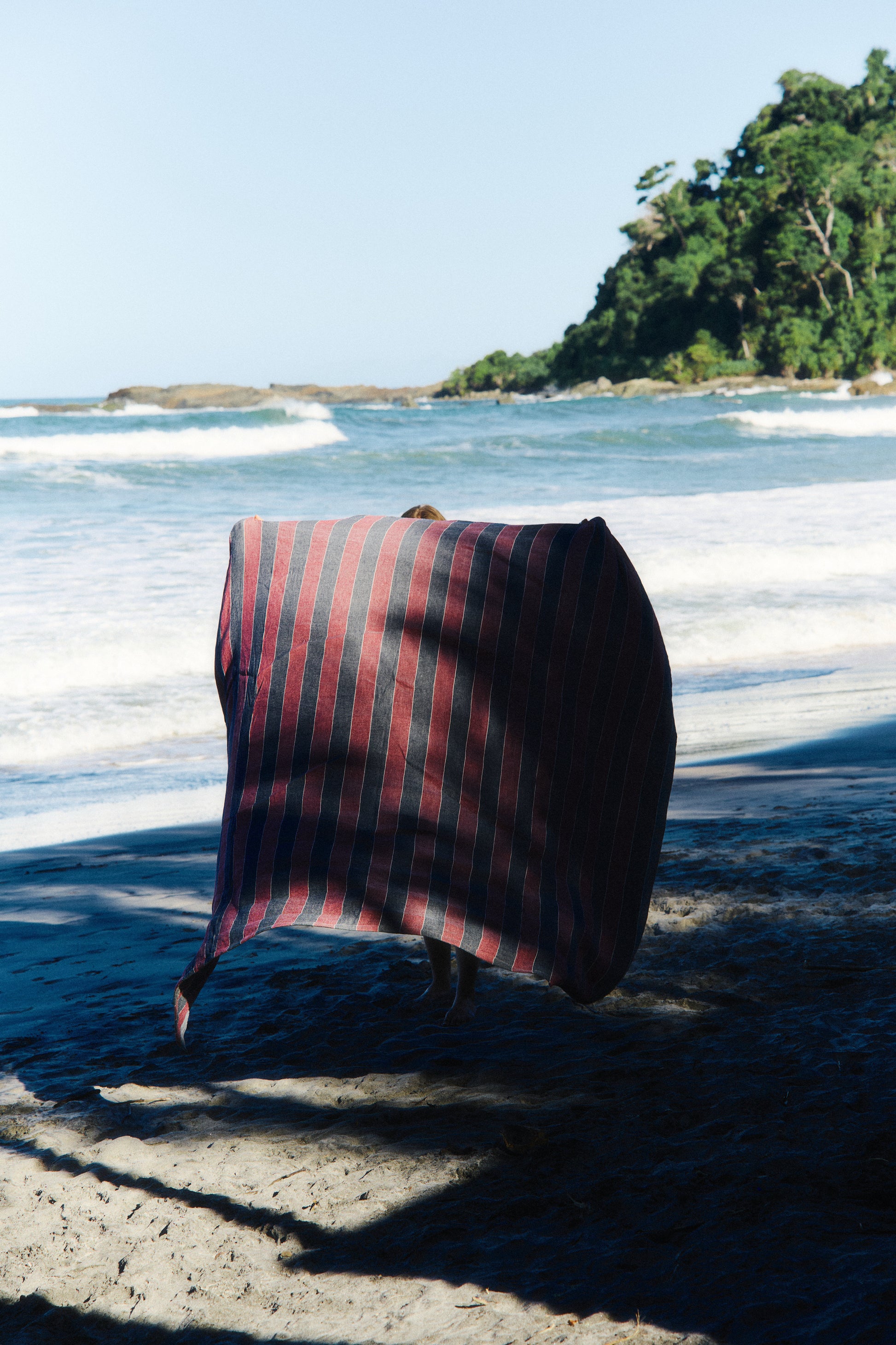 The PERMANENTS® Beach Towel is woven from premium European linen on a traditional Jacquard loom. Naturally absorbent and quick to dry, this large towel (200x200cm) is finished with integrated ties so it can be rolled up and carried with ease. Made in a family-run mill with over 100 years of textile heritage in Bavaria, Germany.