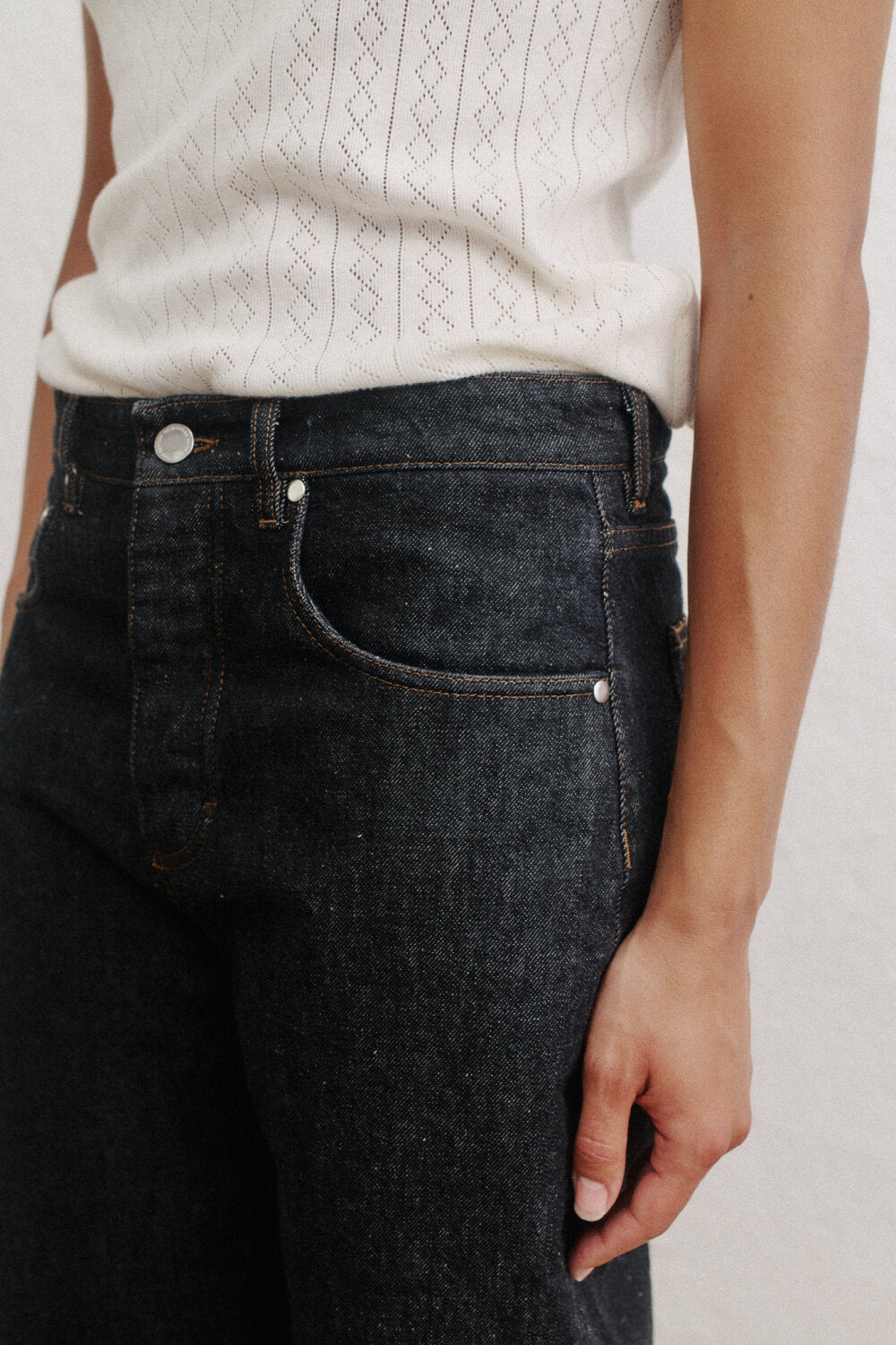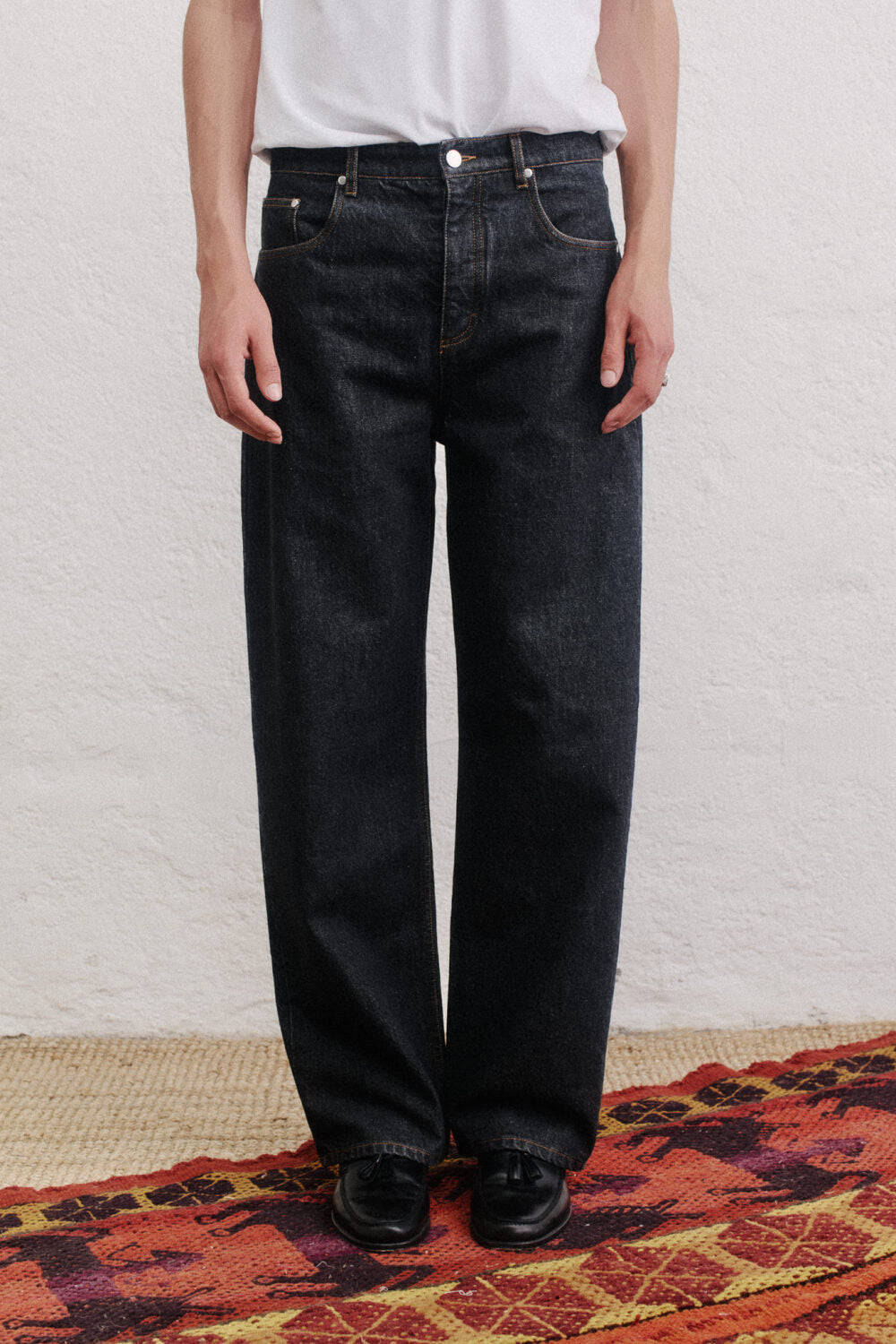 The Beto Wide Jeans offer a contemporary twist on classic denim. Soft washed for a vintage, worn appearance, these jeans are woven from 100% organic cotton in an Italian fabric mill renowned for its denim expertise since 1880s. Featuring long, wide legs, the Beto Wide Jeans provide a relaxed yet stylish silhouette. They are designed with a traditional 5-pocket layout and a button fly, combining timeless elements with modern flair.
