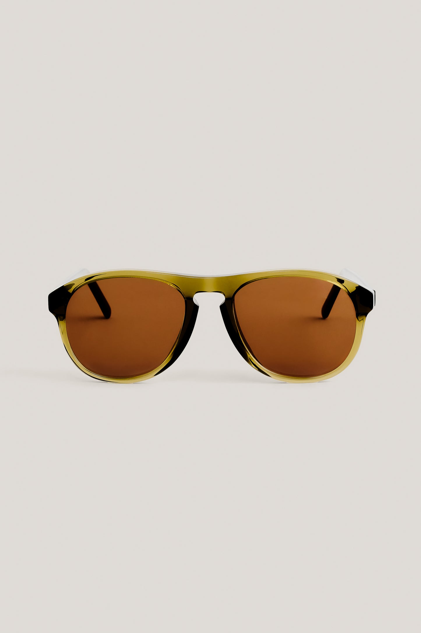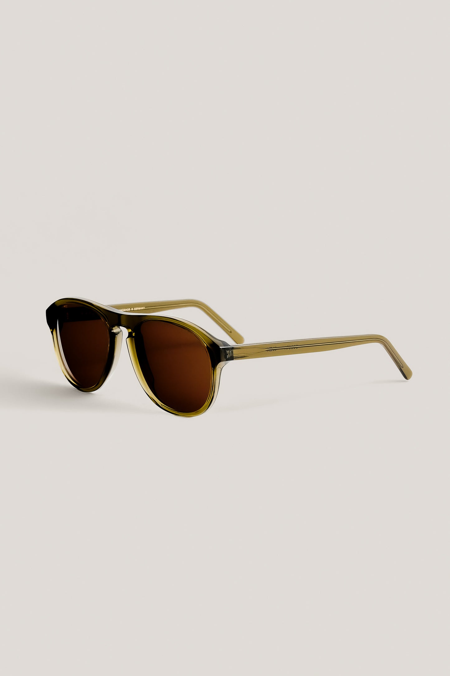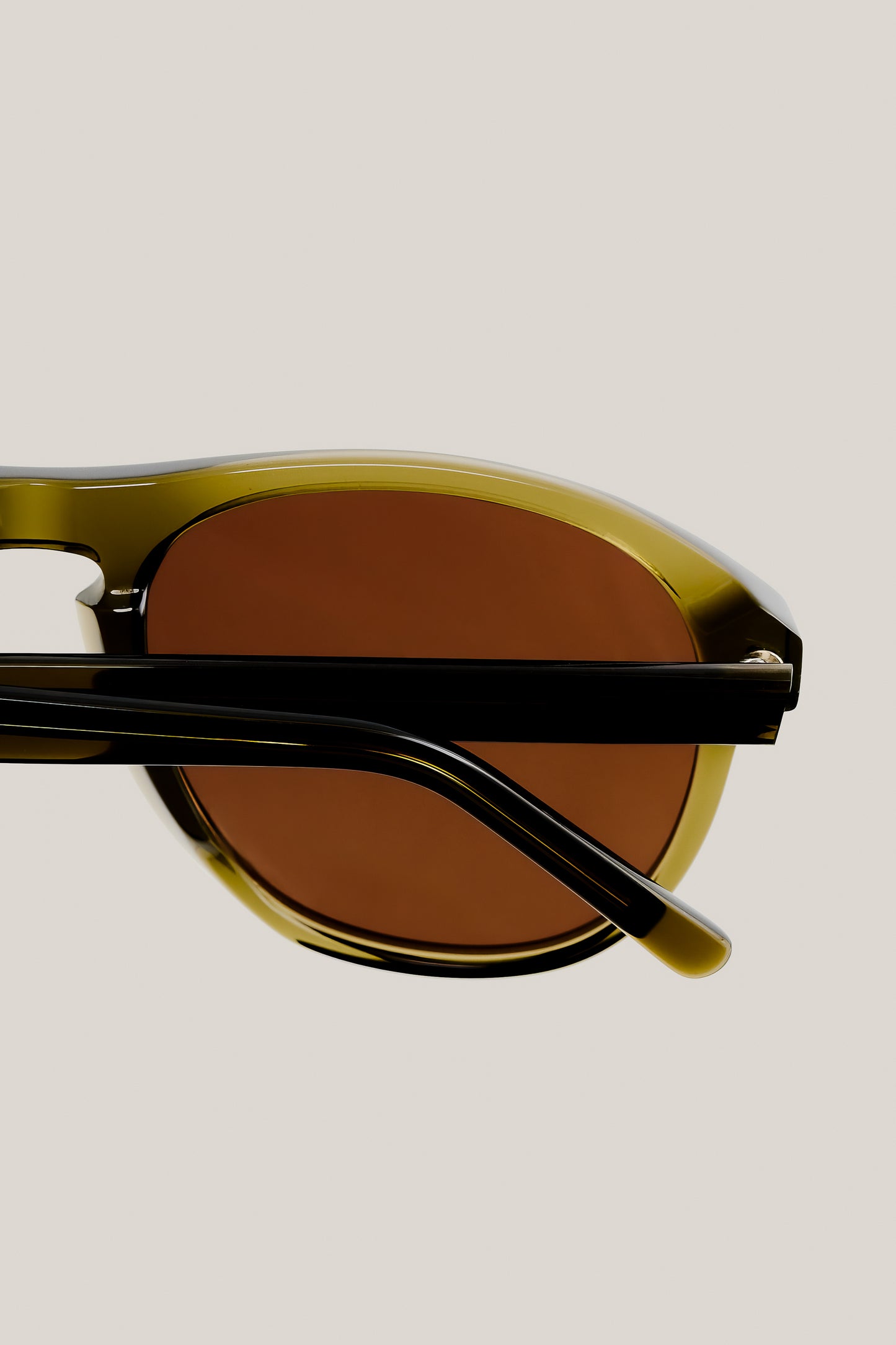 A vintage inspired oval shape featuring a solid frame. Comes with a well-crafted paperboard box and a logo-stamped carrying case.