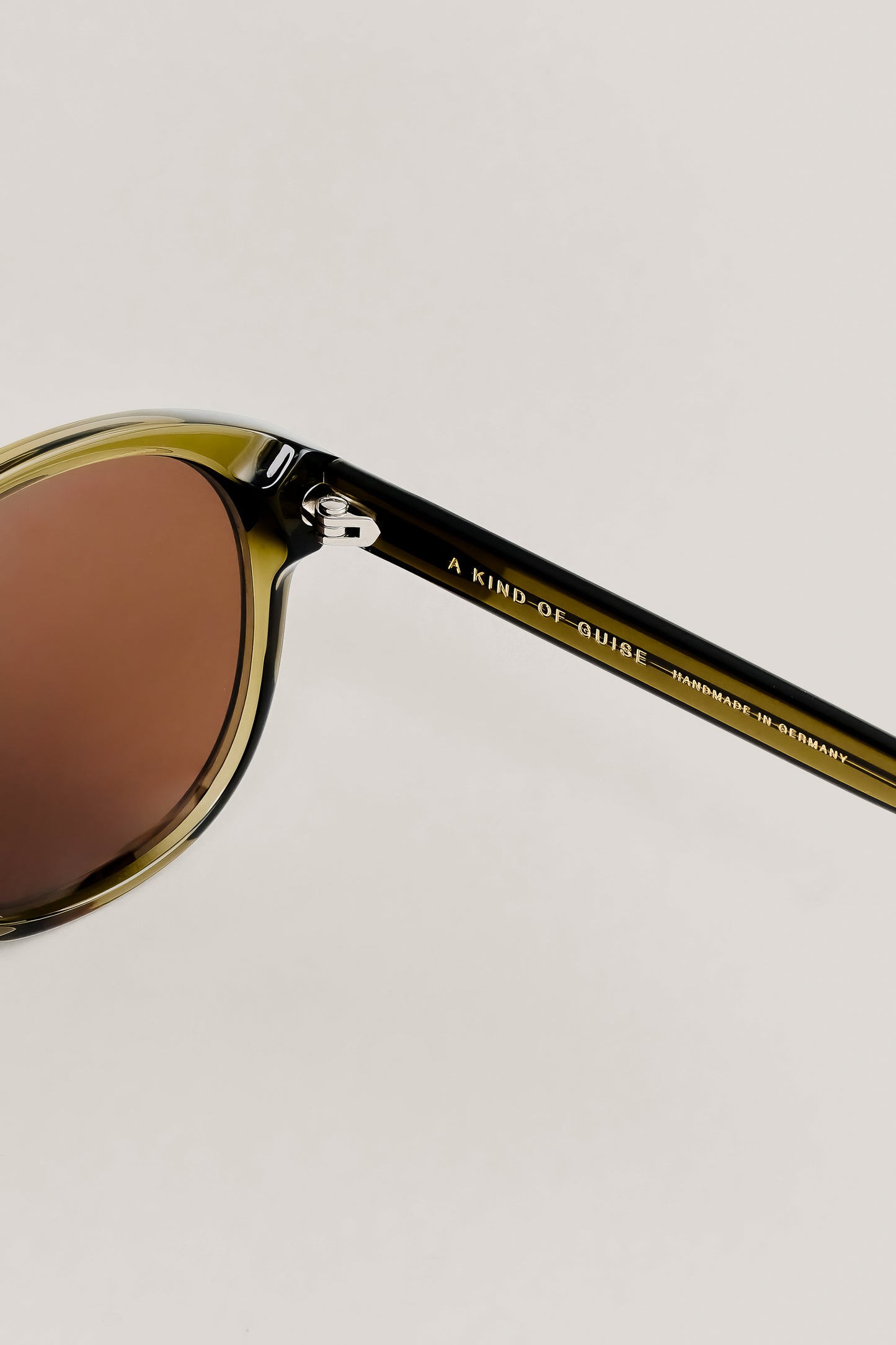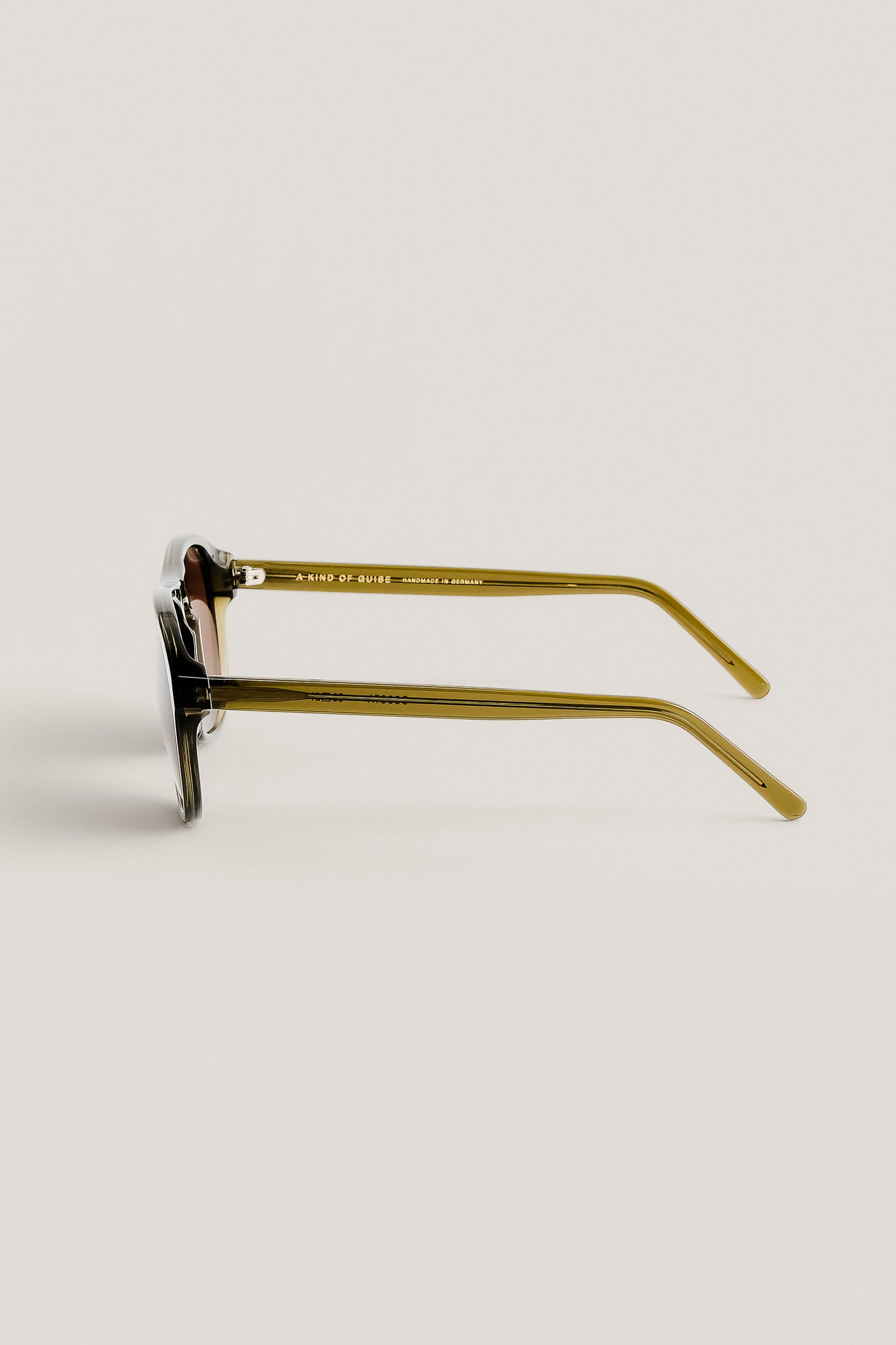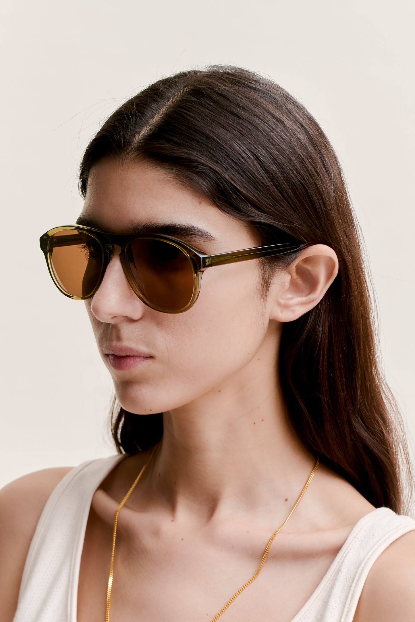 A vintage inspired oval shape featuring a solid frame. Comes with a well-crafted paperboard box and a logo-stamped carrying case.