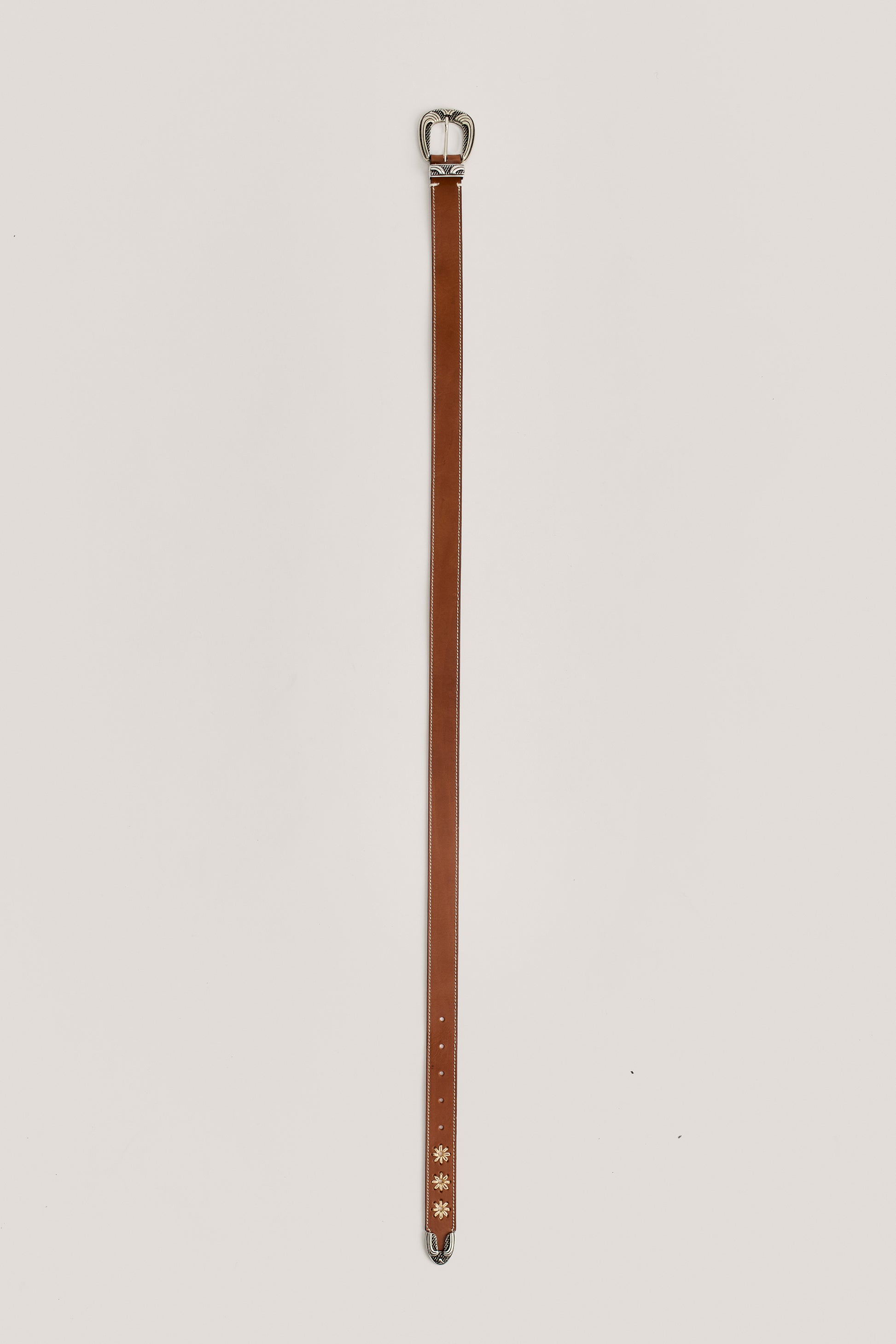 PRODUCT: This belt is equipped with a decorated antique silver buckle and intricate hand embroidery.