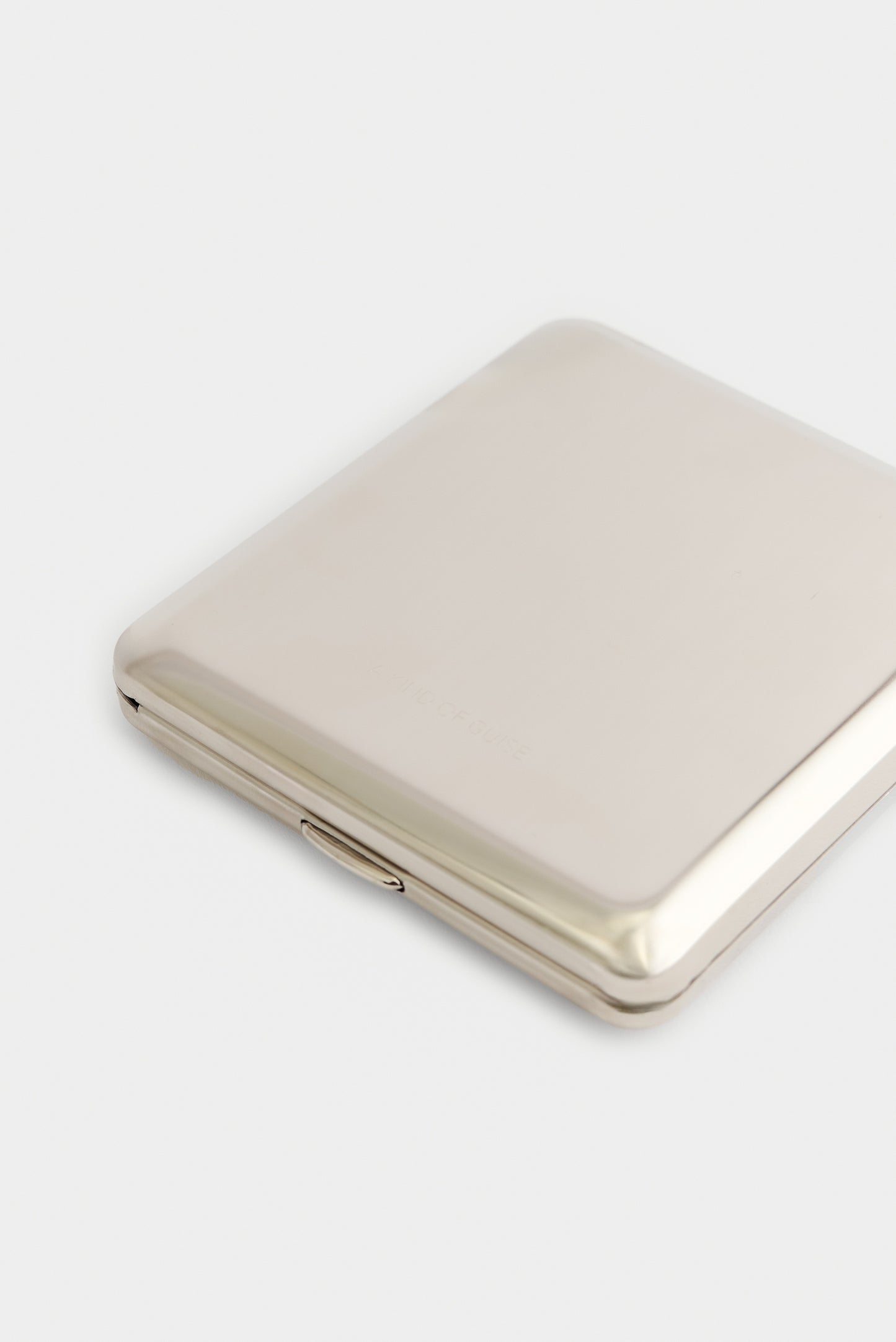 PRODUCT: The Cigarette Case in Chrome is an everyday accessory designed to securely store up to 18 cigarettes. Its compact shape and clean surface give it a balanced presence that fits neatly into a pocket or bag. With its polished chrome finish, the case adds a classic edge, combining function with elegance.