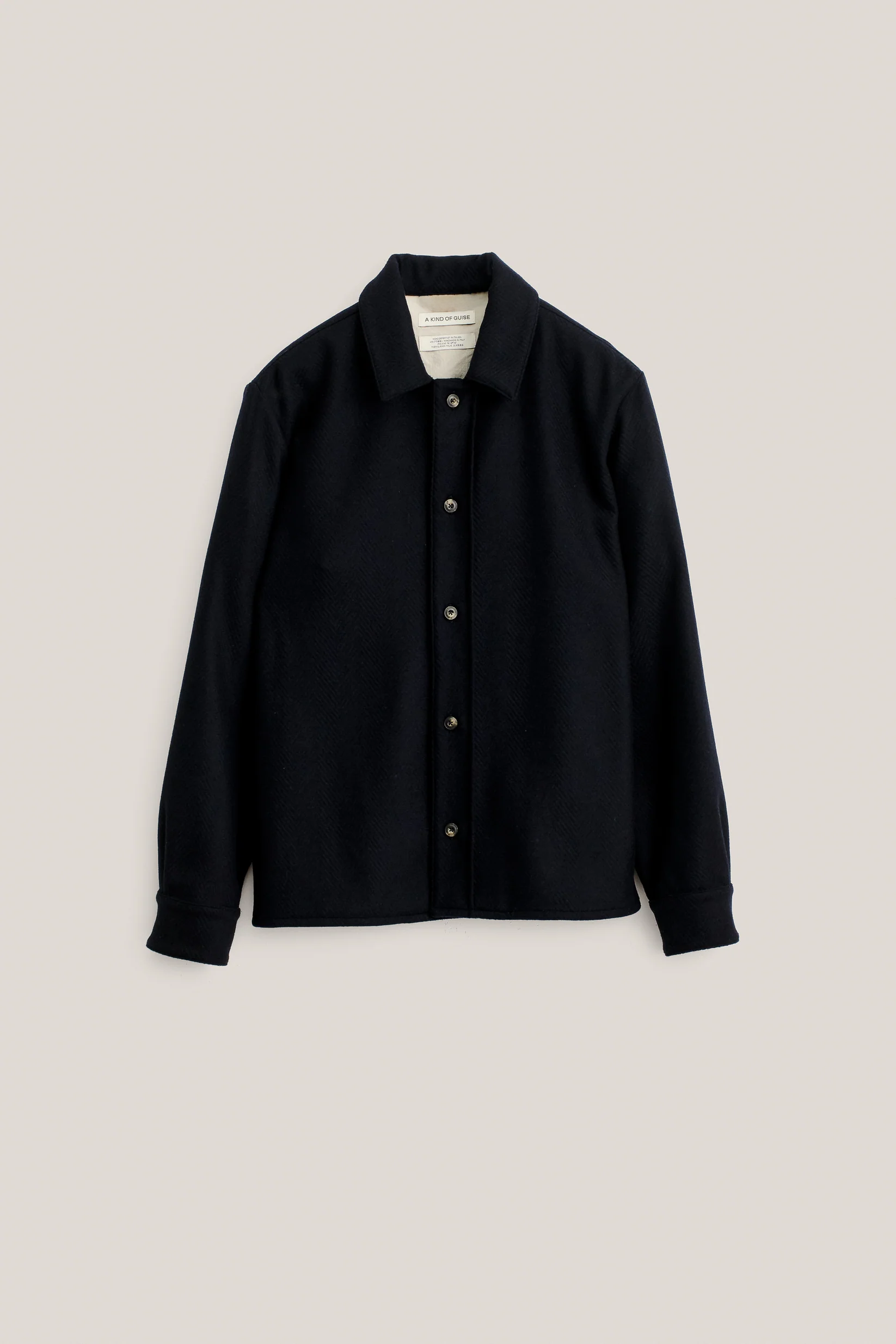 FABRIC: A tightly woven wool fabric enriched with a touch of cashmere for added softness and warmth. Featuring a classic herringbone pattern, its surface is lightly brushed to create a refined, velvety handfeel.