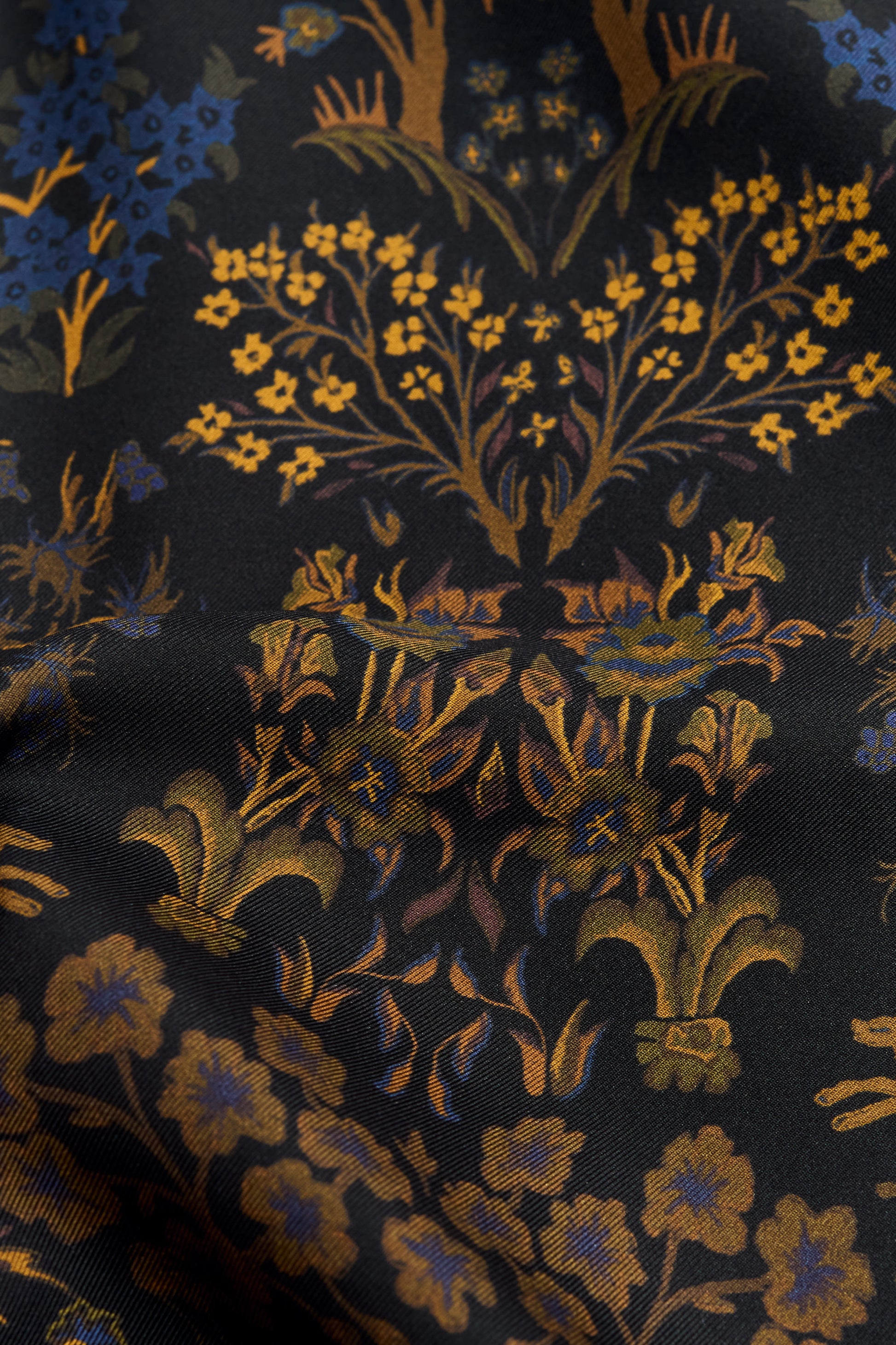 PRODUCT: Wrap yourself in the dual luxury of our two-sided scarf, where patterned silk meets supremely soft cashmere.