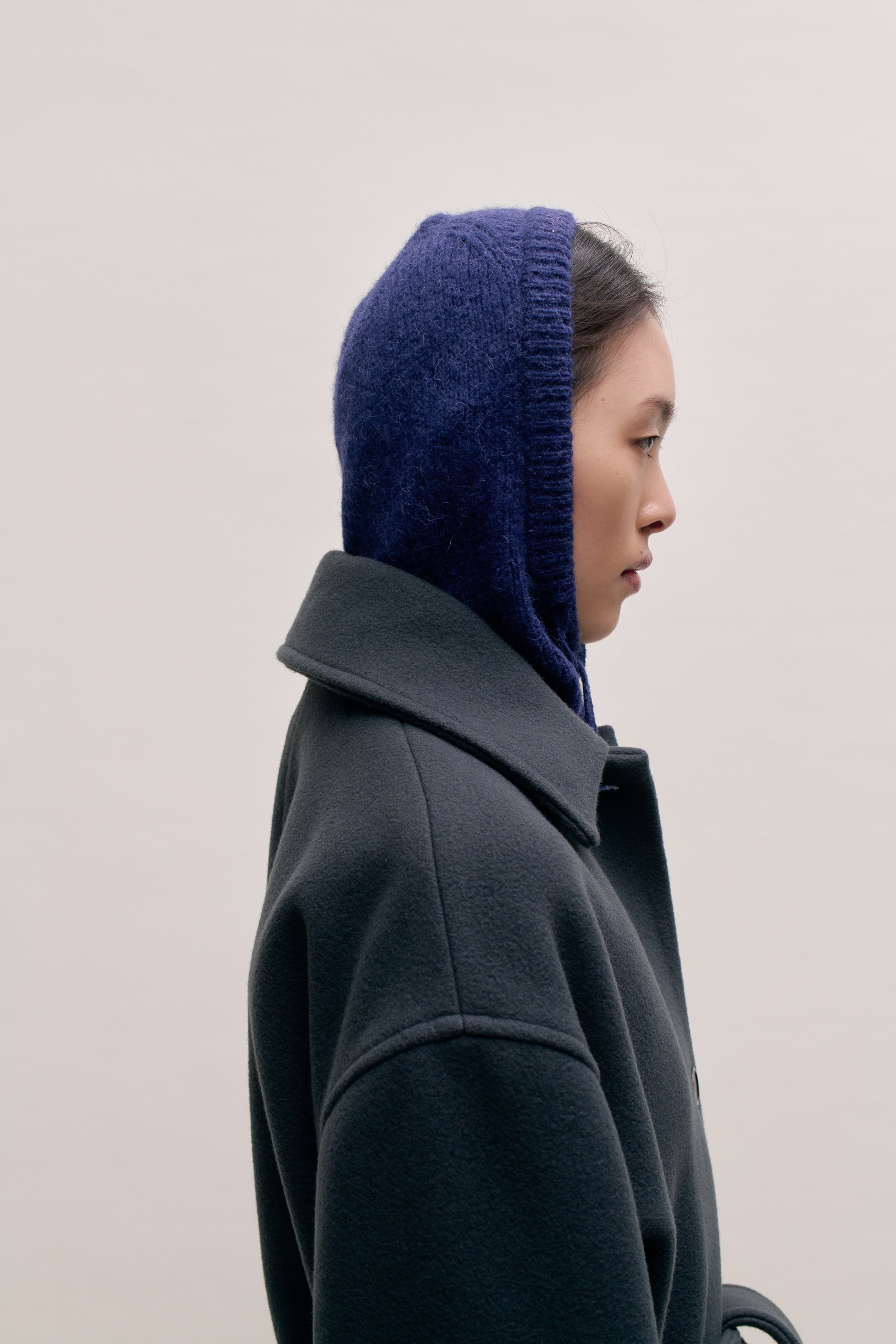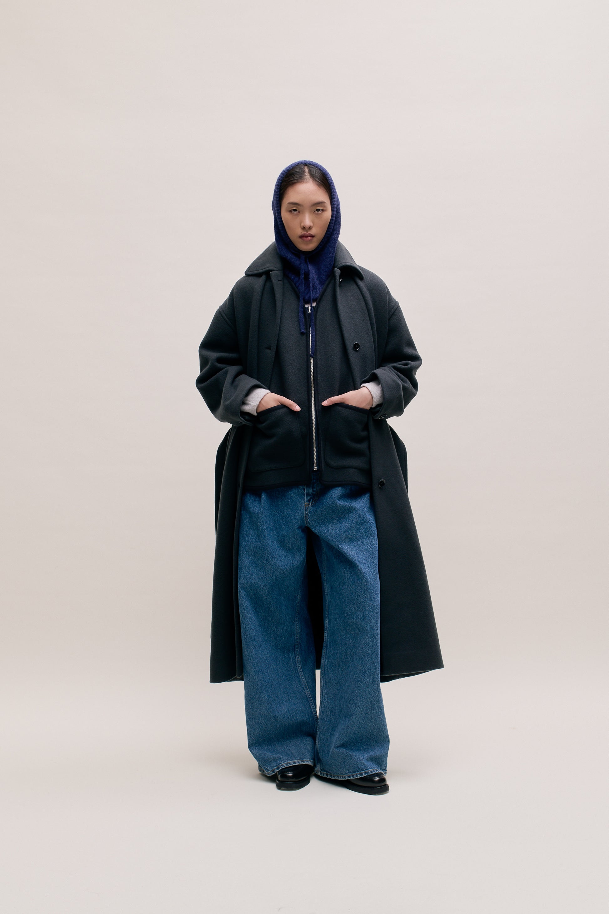 FABRIC: A heavy, brushed wool-cashmere blend with a dense, supple structure. Thick and warm, it offers a soft touch and rich insulation for cold weather comfort.