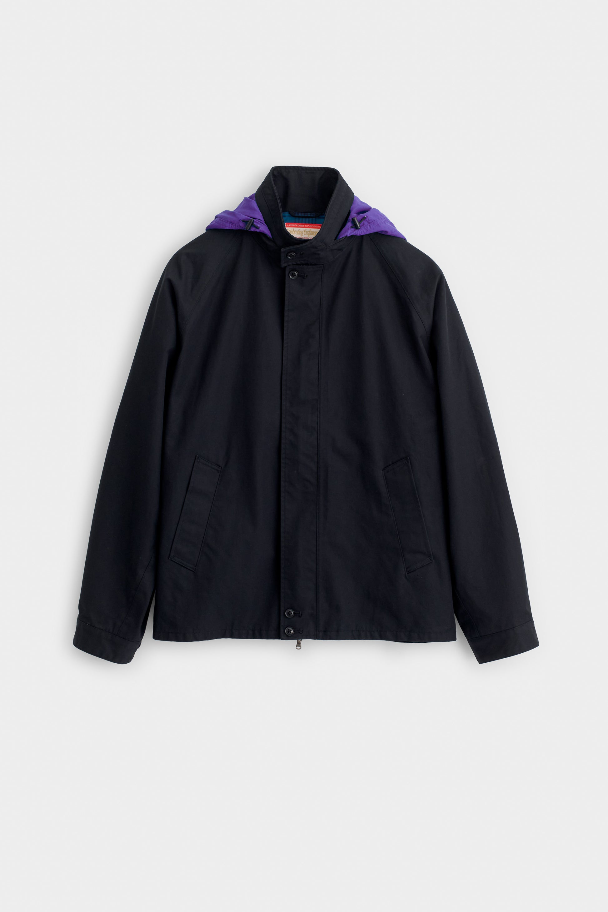 PRODUCT: The AKOG x NANAMICA GORE-TEX Crew Jacket pairs technical performance with a clean, minimal design. Crafted in Japan from 2-layer GORE-TEX®, it is windproof, waterproof, breathable, and lightweight—designed for functionality across changing conditions.A hidden purple hood is stowed in the collar, adding protection without altering the silhouette. Details include custom AKOG x Nanamica logo buttons, an inner zip pocket, an adjustable fit via hem adjusters and a inner snow- and windguard.