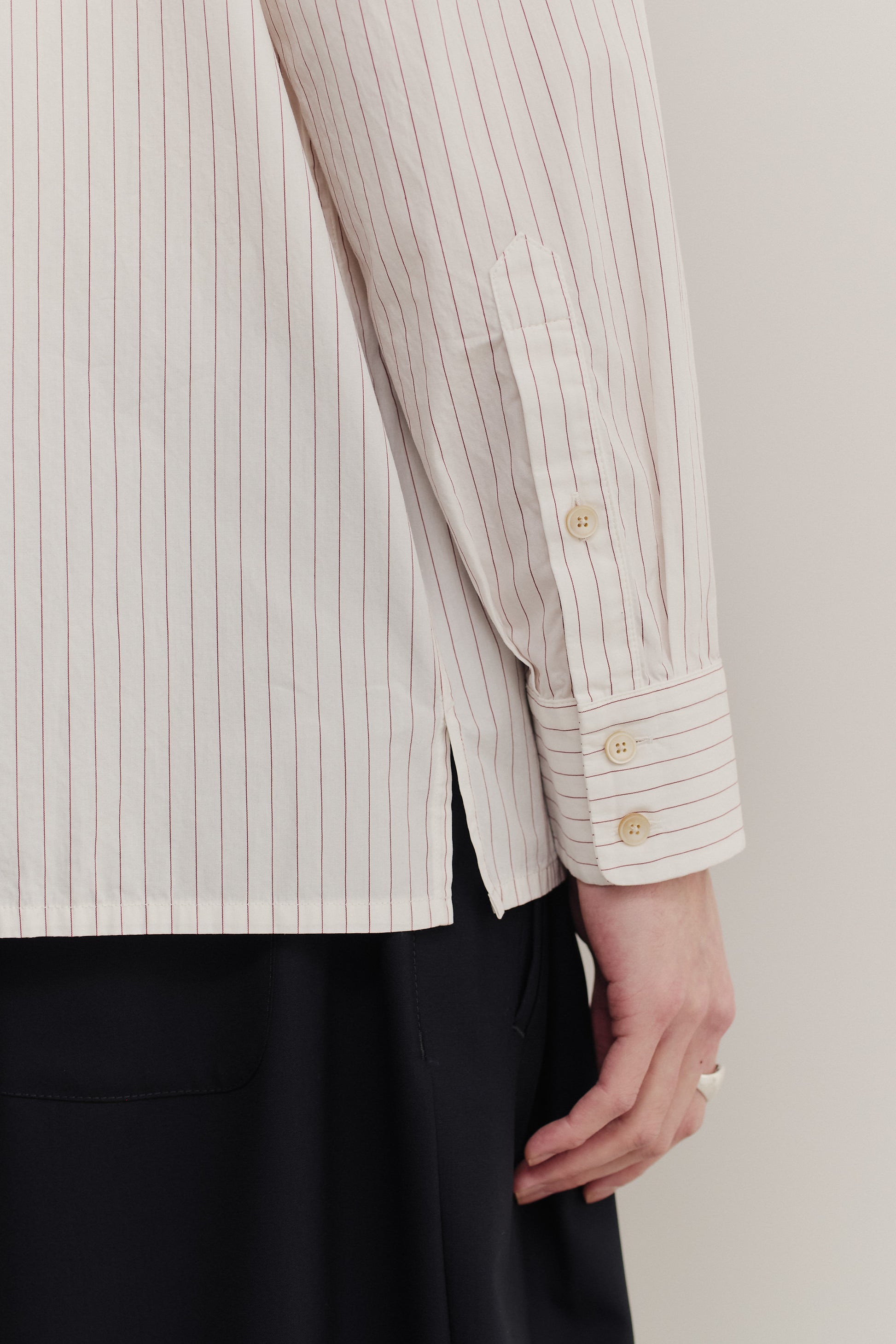 PRODUCT: The Gusto Shirt, bestseller since seasons, is an oversized shirt with a regular collar, front patch pocket, straight hemline, and side slits. Pleat at the back.