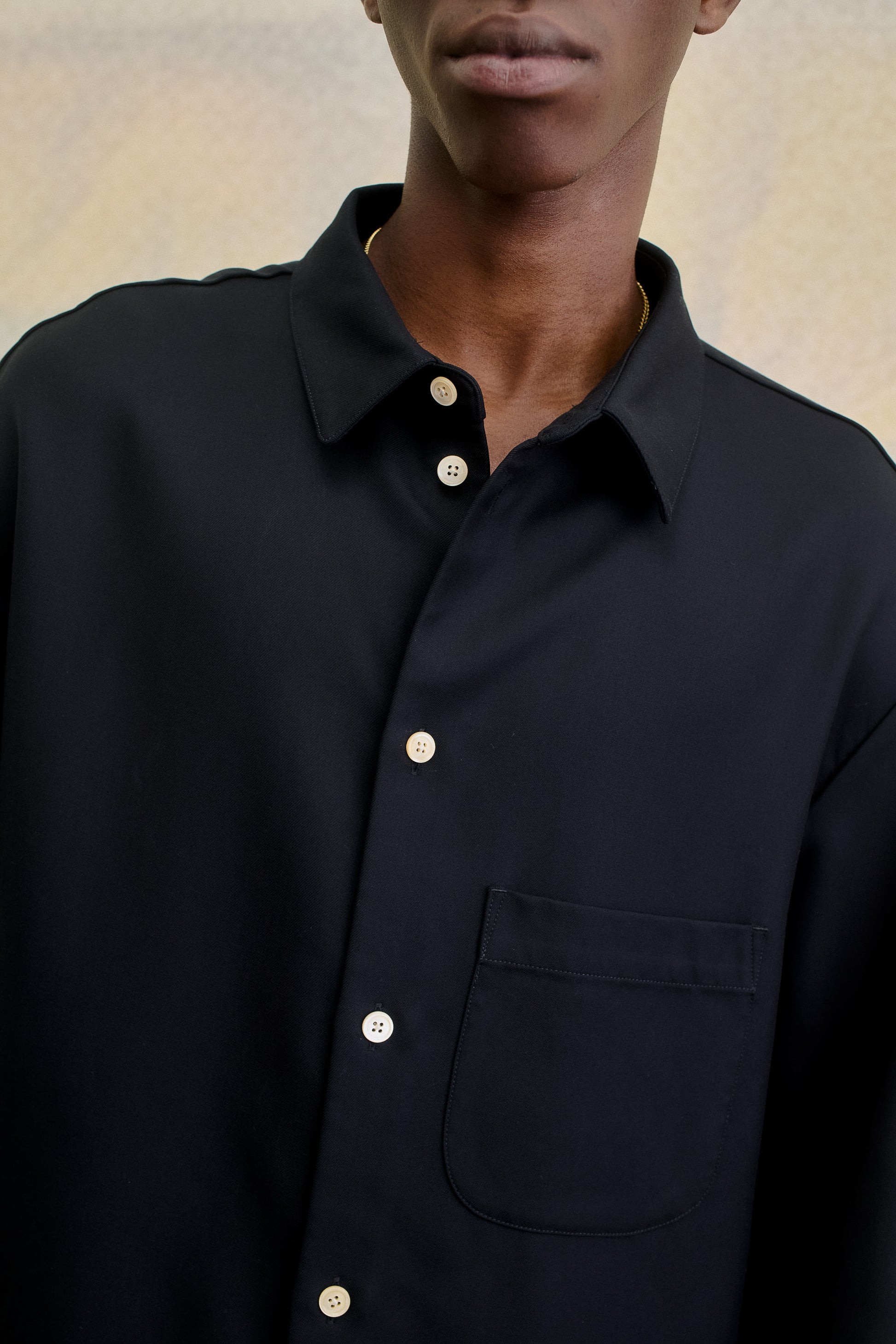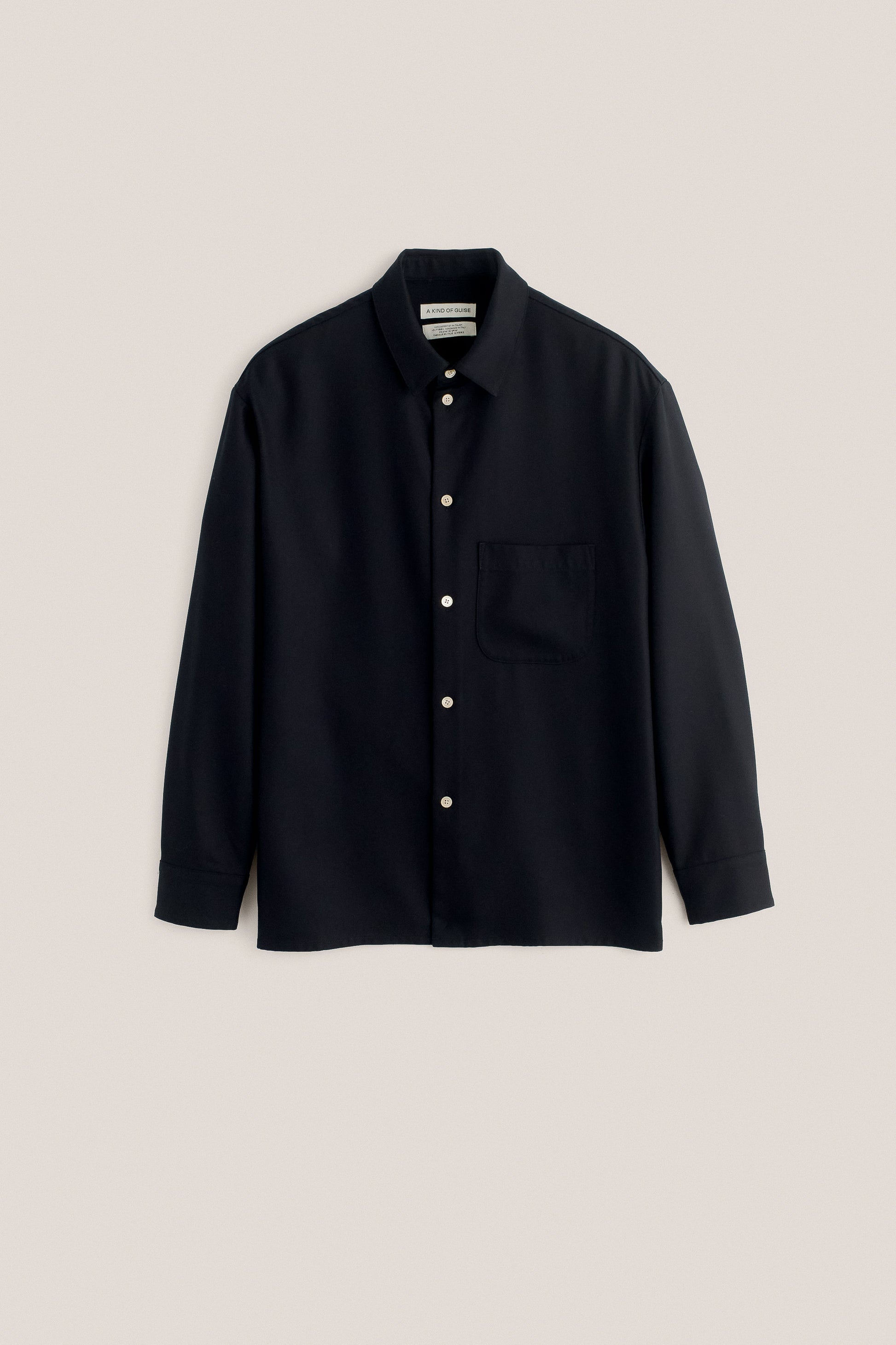 PRODUCT: The Gusto Shirt is an oversized shirt with a regular collar, front patch pocket, straight hemline, and side slits. Pleat at the back.