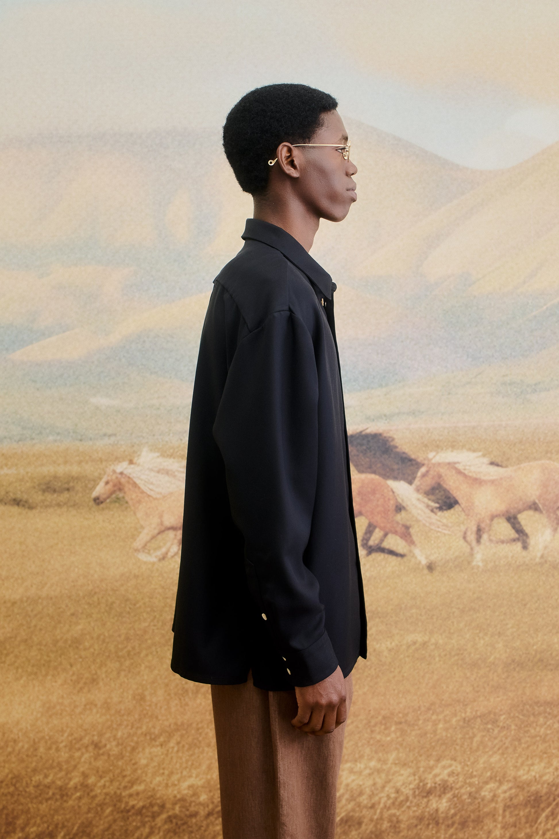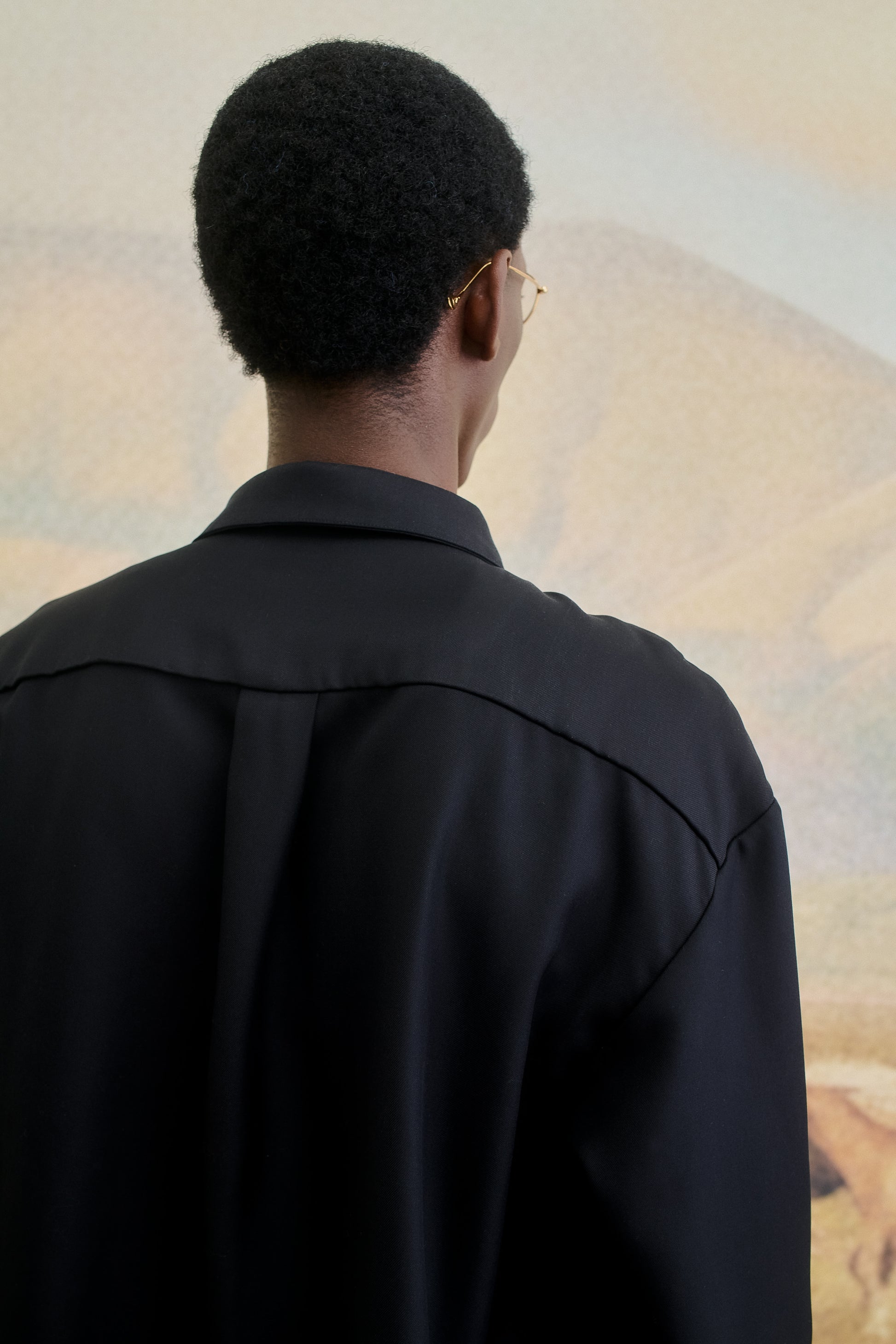 FABRIC: A thicker but still fluid lyocell fabric with an airy drape and a sheer matte finish. Its delicate structure lends a sense of lightness and ease.