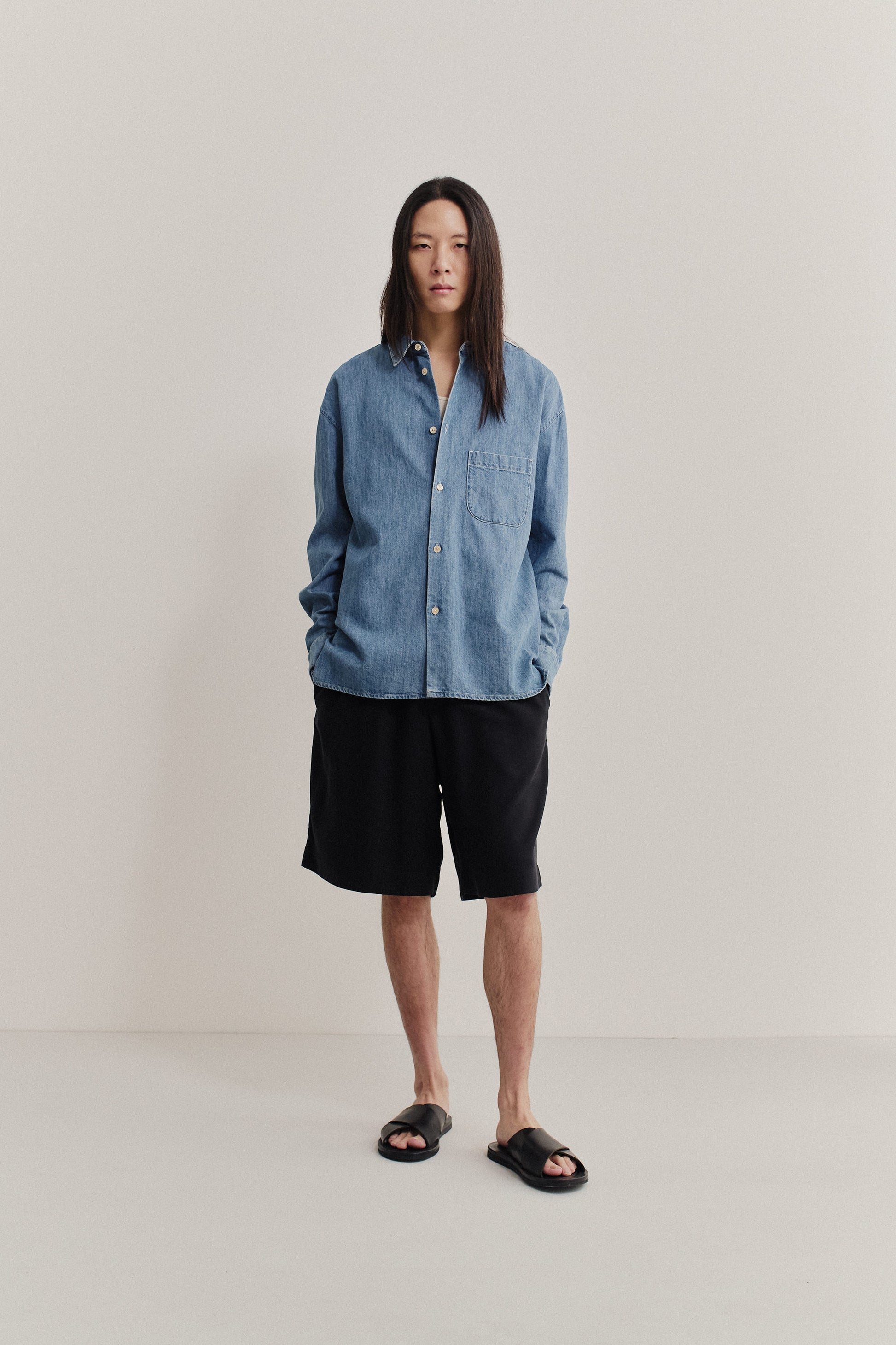 PRODUCT: The Gusto Shirt, bestseller since seasons, is an oversized shirt with a regular collar, front patch pocket, straight hemline, and side slits. Pleat at the back.