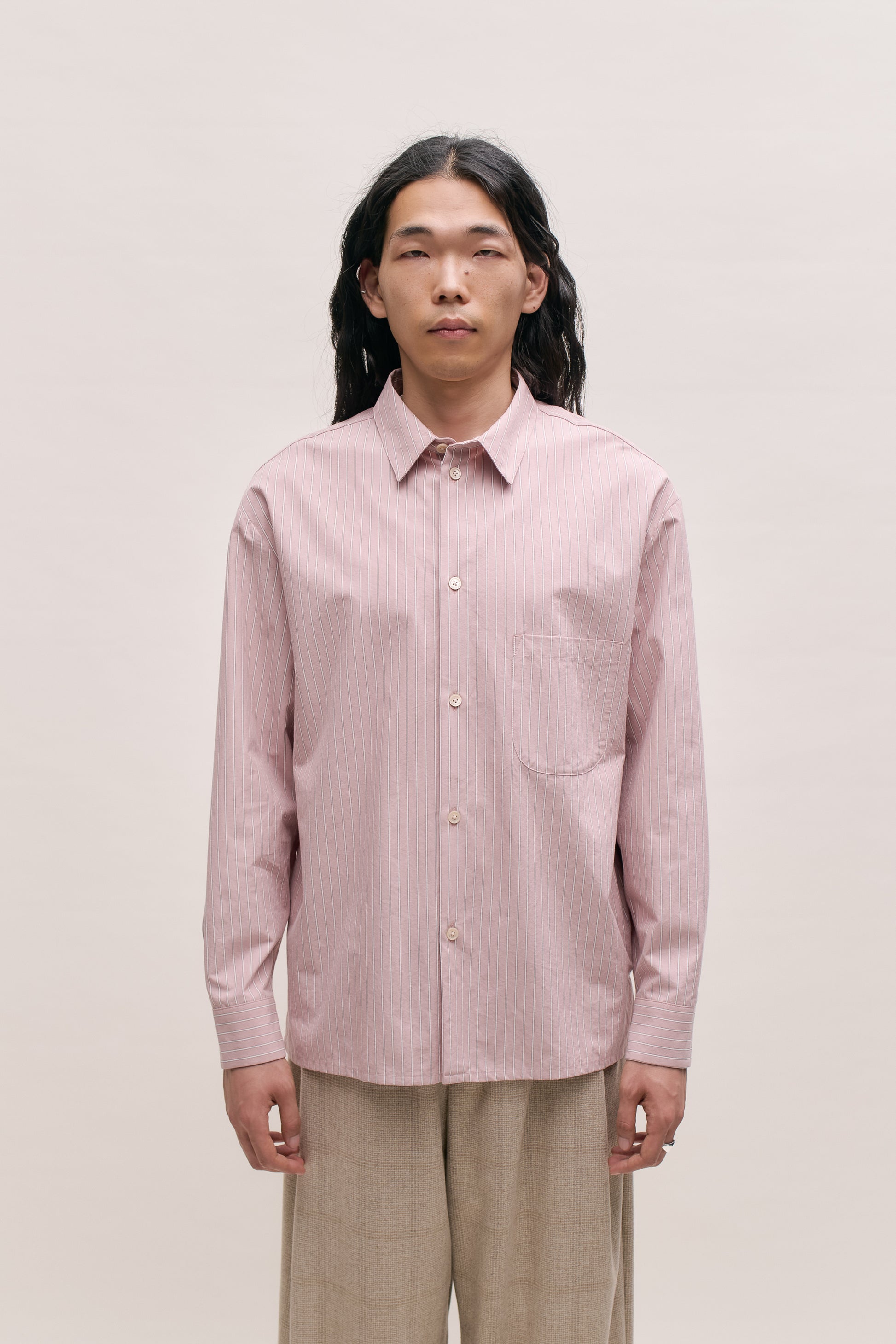 €195PRODUCT: Our beloved Gusto Shirt is an oversized shirt with a regular collar, front patch pocket, straight hemline, and side slits. It has a pleat at the back.