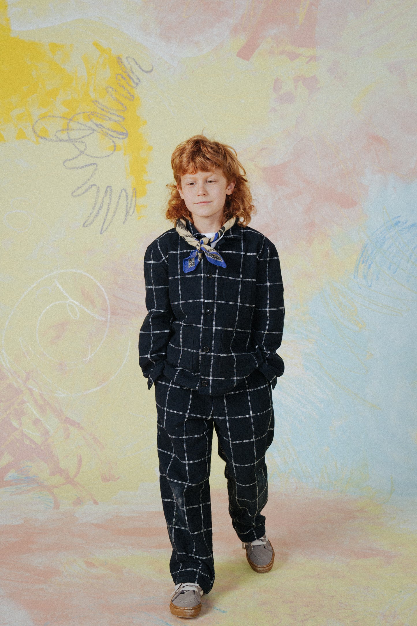 As a playful rendition of our signature Samurai Trousers, the Jack Pants feature a comfortable elasticated waistband with an adjustable drawstring. With a wide-leg design, they offer freedom of movement and a relaxed look. Made from a cotton blend fabric with a big check design from our SS22 collection.