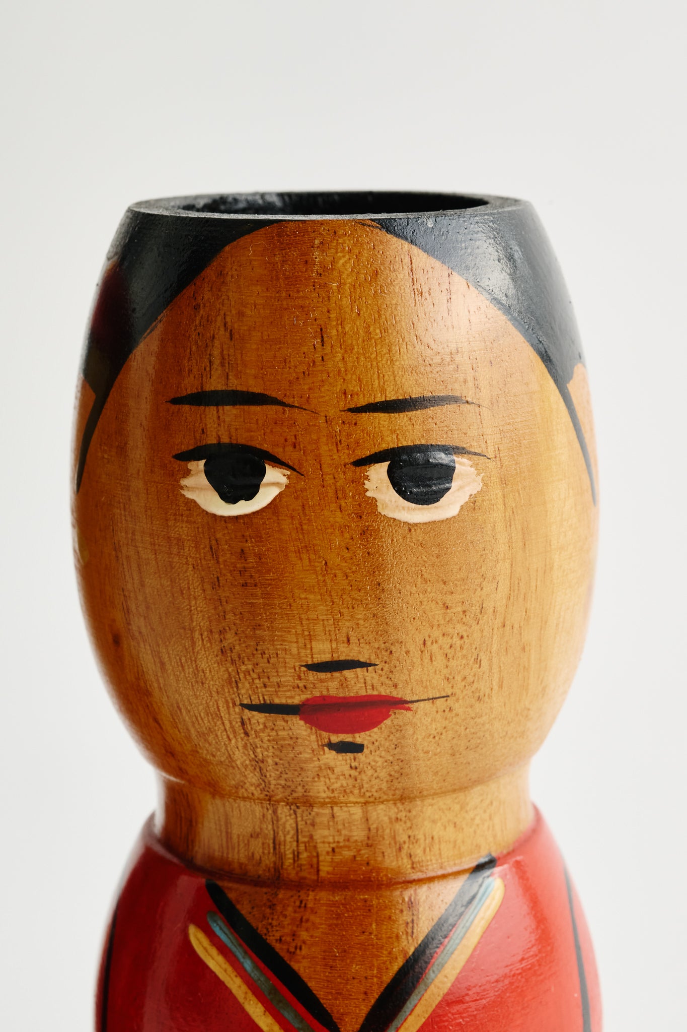 Hand-carved and painted in Sri Lanka, this charming wooden pen holder set depicts a traditional Kandyan couple in vibrant folk-art style.