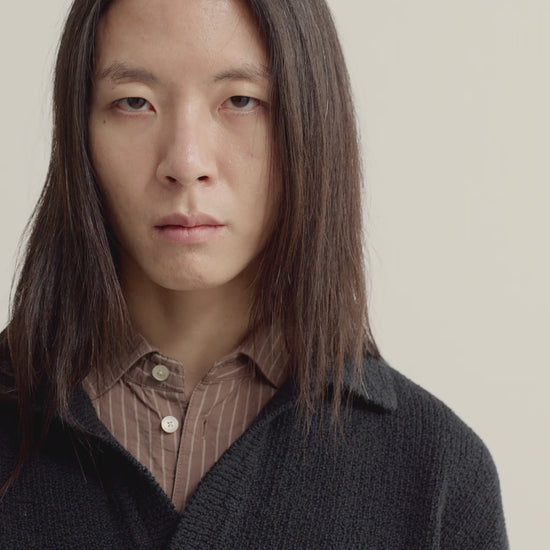 PRODUCT: The Marabou Knit Polo has a relaxed, slightly cropped fit with dropped shoulders and a straight hem. Finished with a soft open collar and ribbed trims.