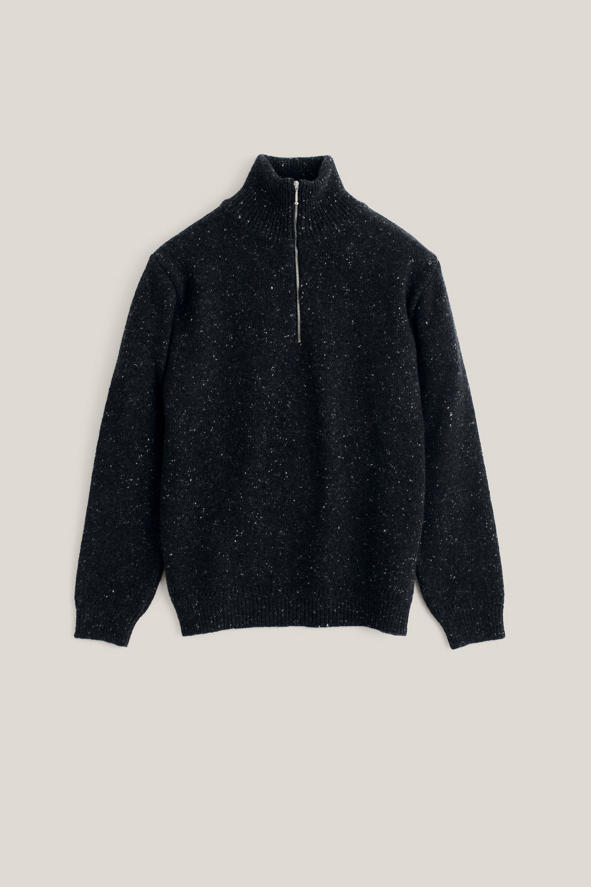 PRODUCT: The Pier Knit Sweater comes with a relaxed fit and dropped shoulders. Half-zip closure up to the rib knitted high neck collar and rib knitted cuffs and waist.
