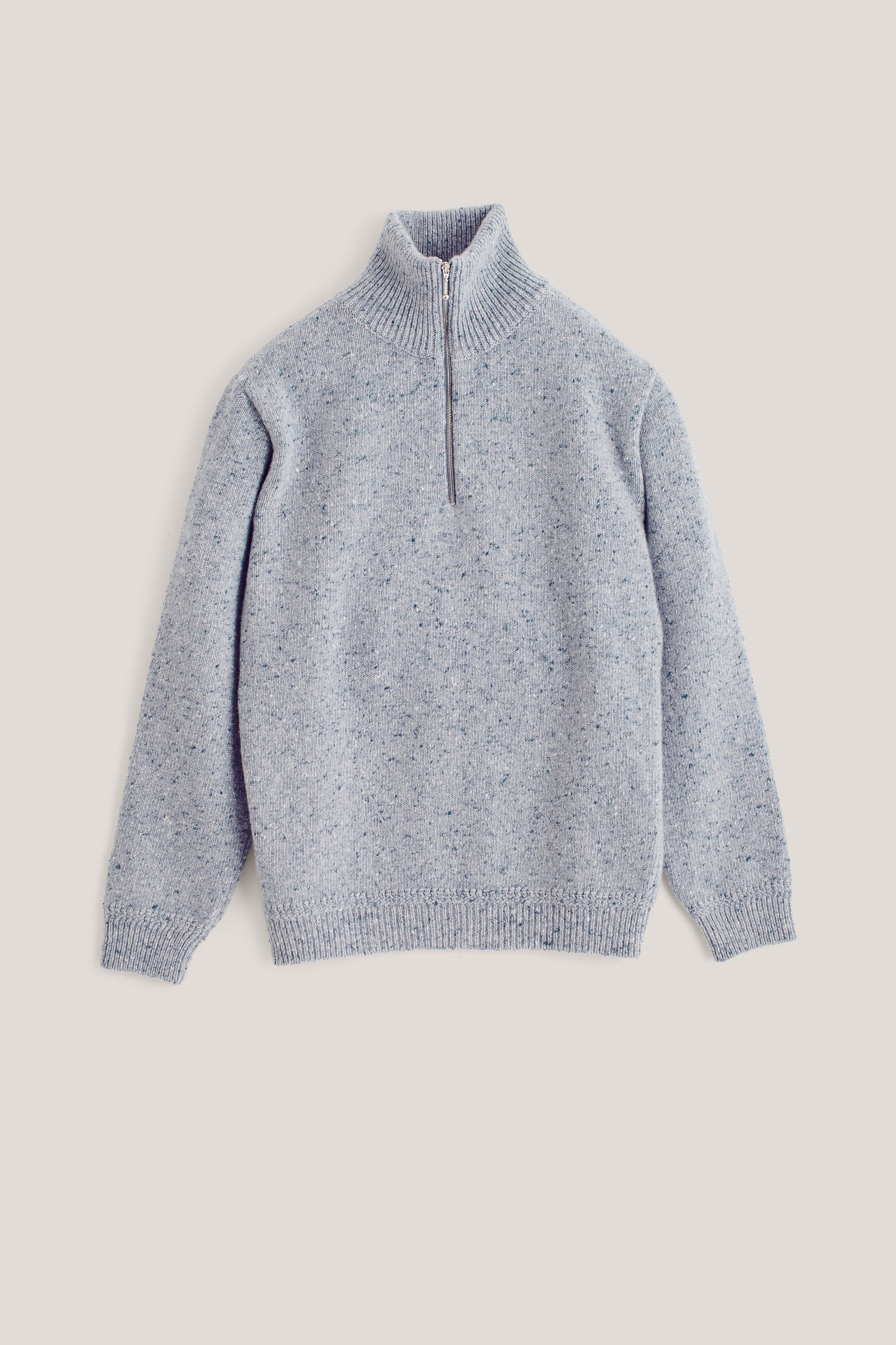 PRODUCT: The Pier Knit Sweater comes with a relaxed fit and dropped shoulders. Half-zip closure up to the rib knitted high neck collar and rib knitted cuffs and waist.
