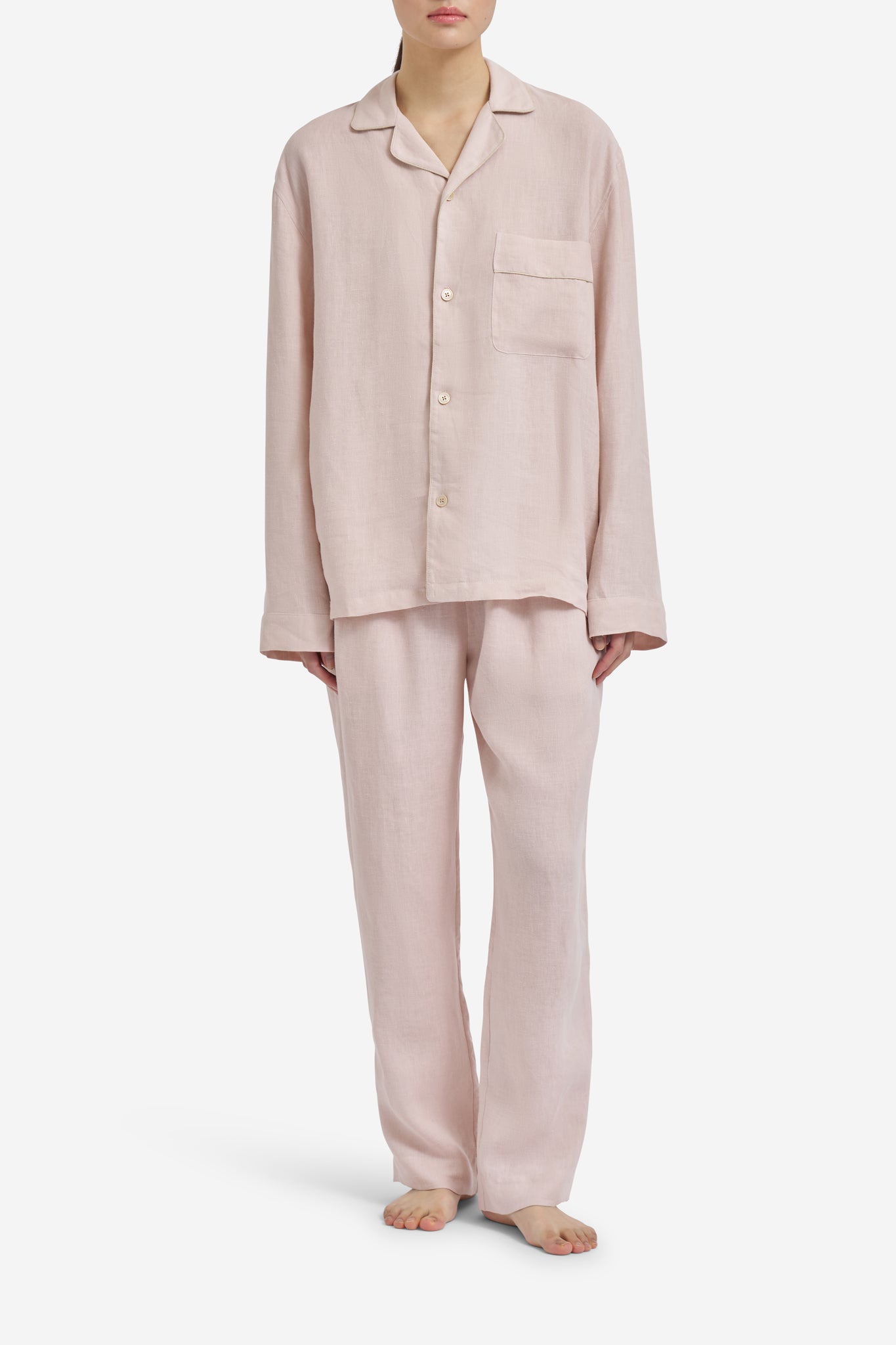 The PERMANENTS® Pyjama Set features a sophisticated piped trim. The set is made from a 100% Belgian linen, offering the airy elegance of linen for a perfect night's sleep.