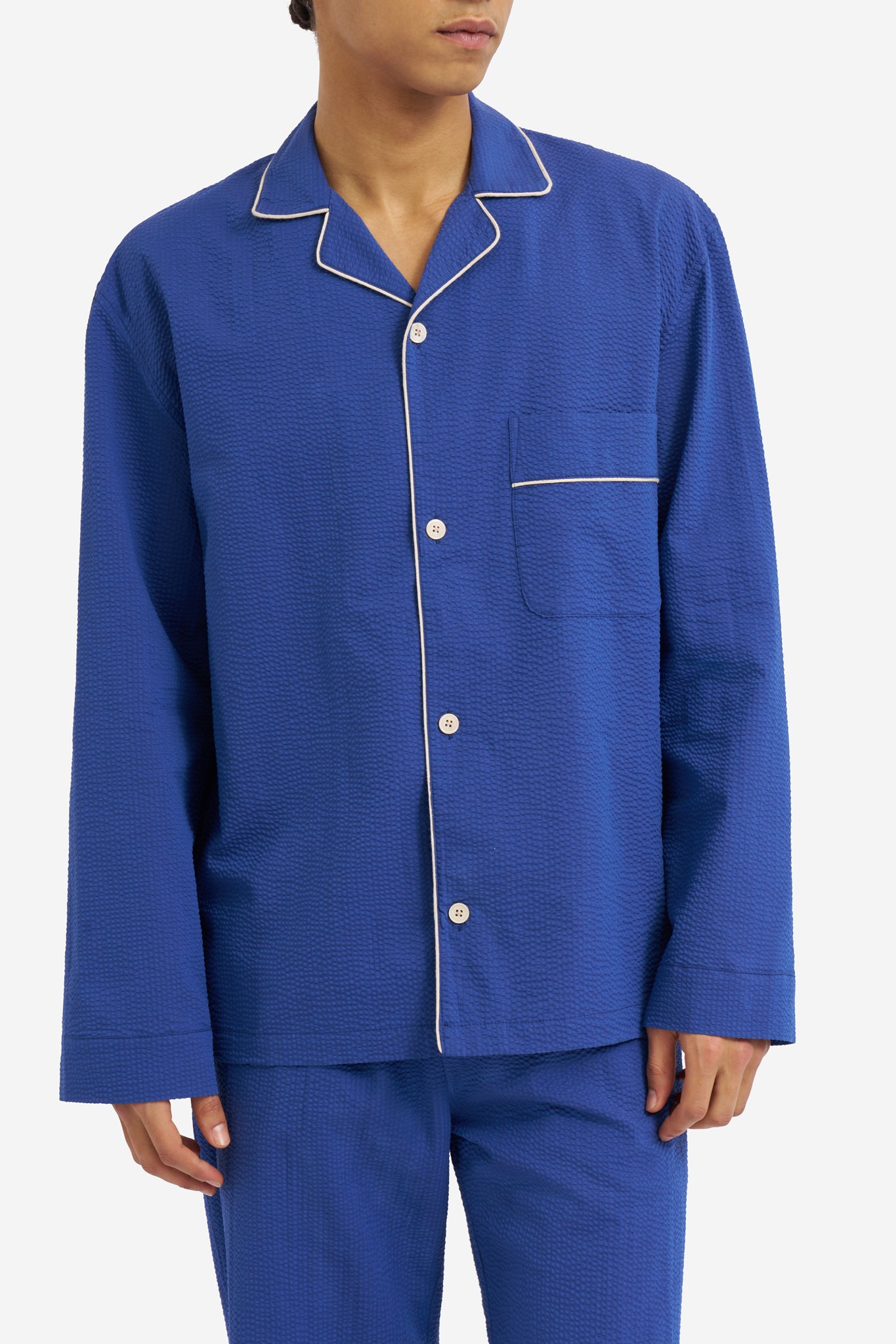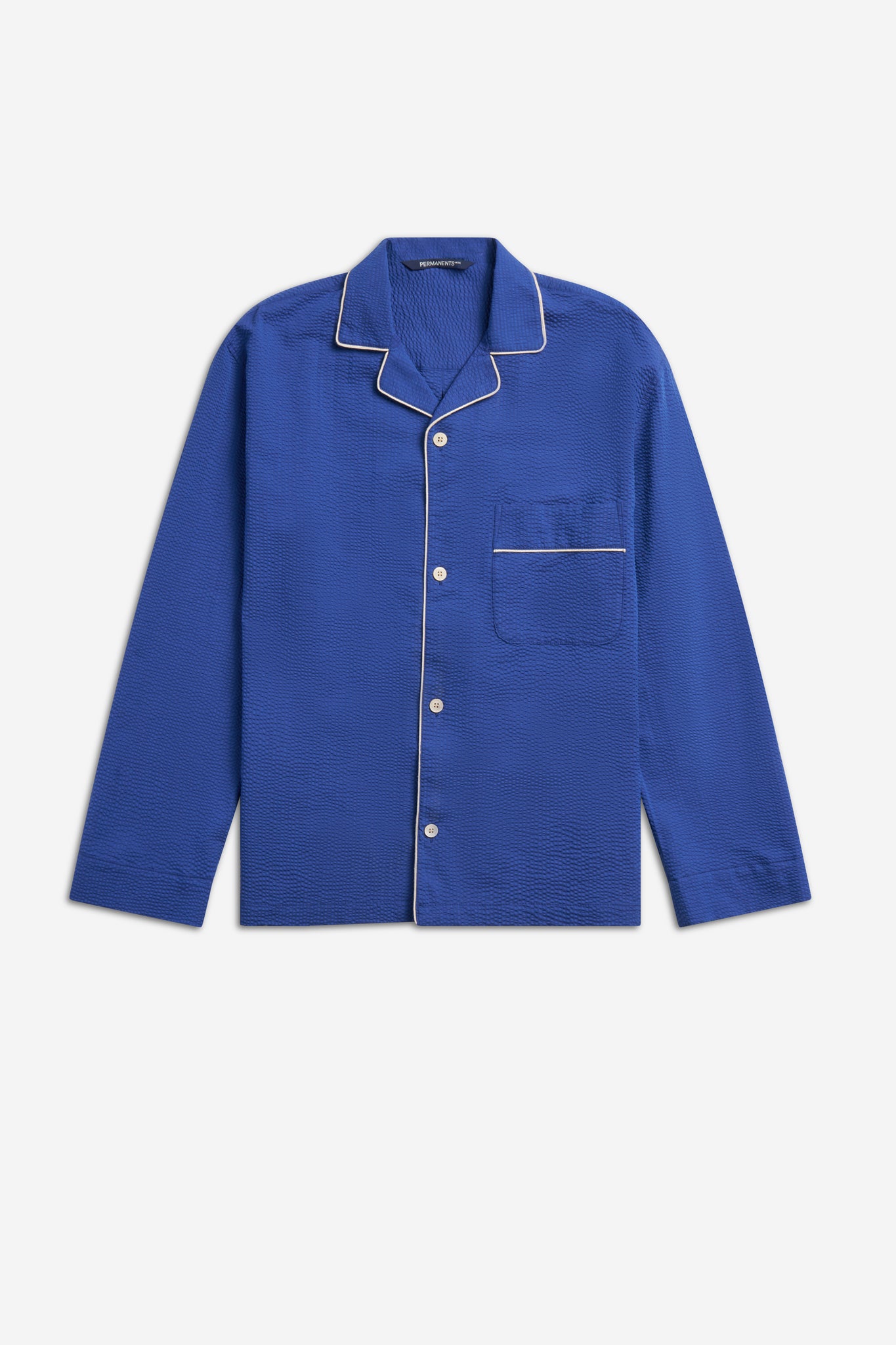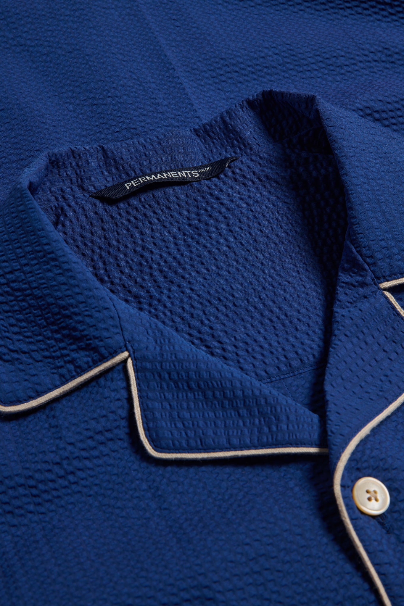 The PERMANENTS® Pyjama Set features a sophisticated piped trim. The set is made from a 100% organic cotton seersucker, offering the airy elegance of linen for a perfect night's sleep.