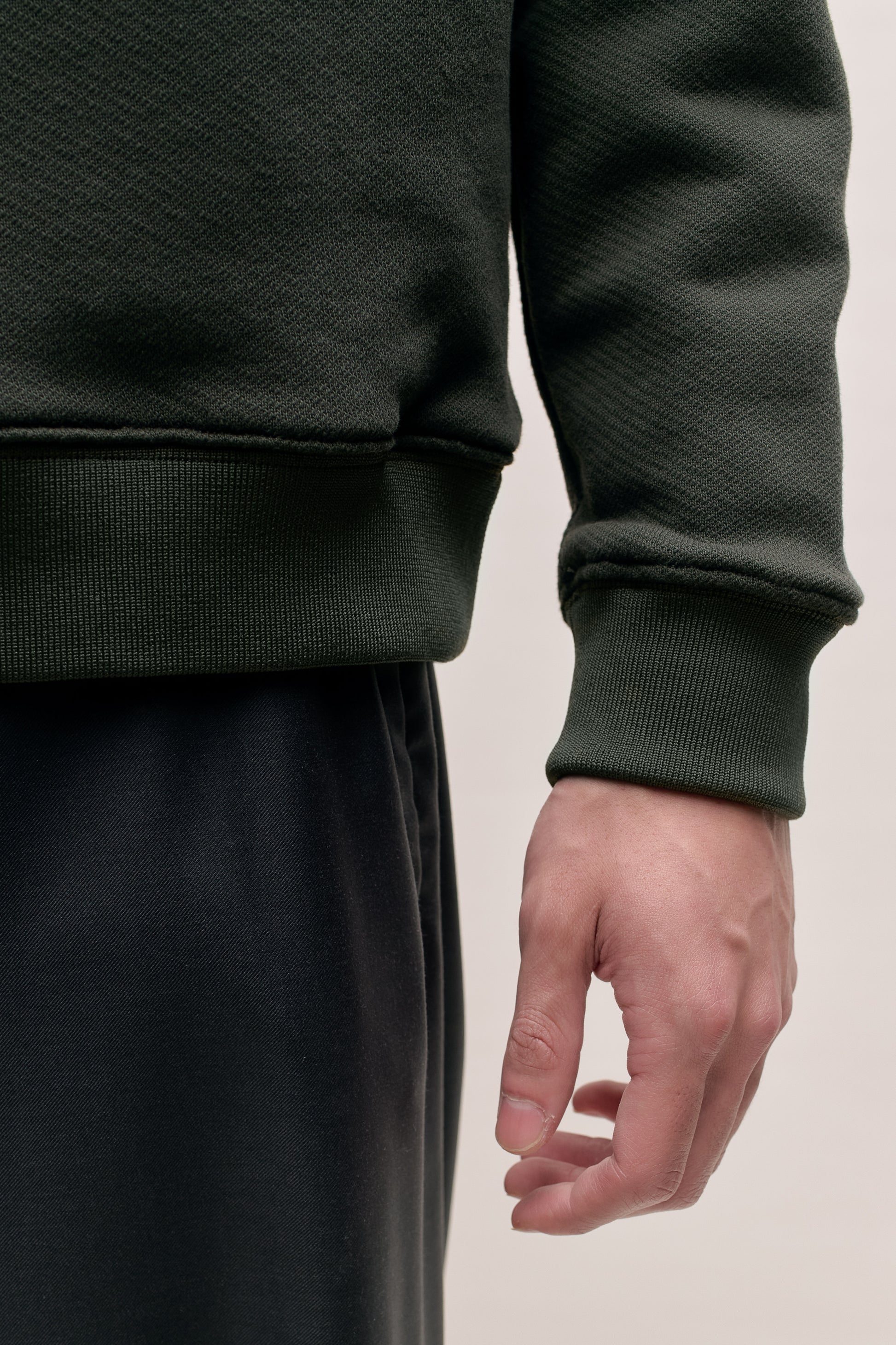 FABRIC: A cotton frottee fabric with a smooth outer face and a ribbed inner side. Known for its firmer feel, it’s made with twisted loops that create a subtle massage effect against the skin.