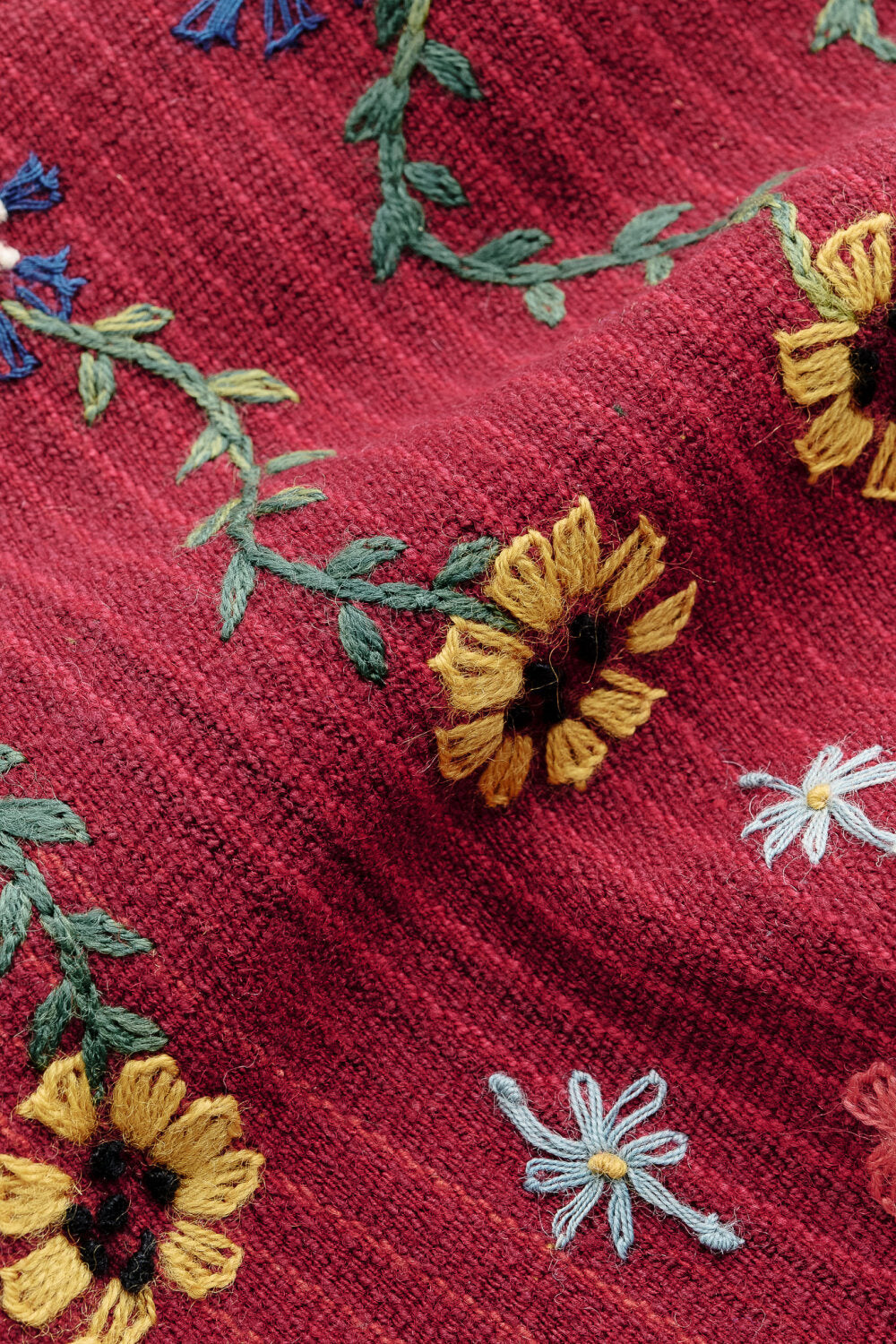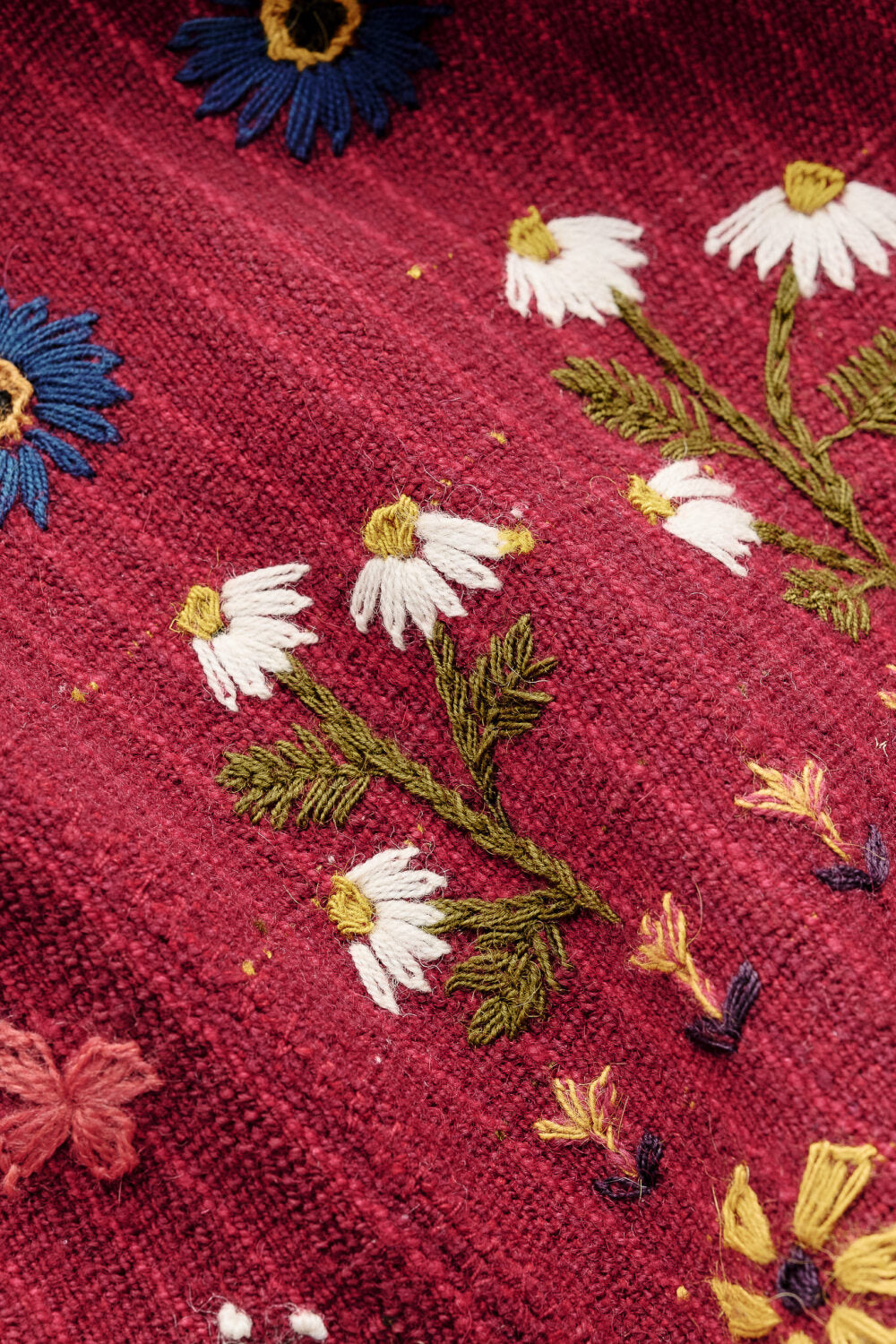 The fabric – a blend of 60% wool and 40% alpaca – takes over four weeks to create, beginning with hand-spun yarns naturally dyed using plants, minerals, and cochineal insects. Woven on traditional backstrap looms, this meticulous process showcases exceptional skill and patience, while intricate embroidery inspired by Peru’s flora and fauna adds an additional layer of artistry.