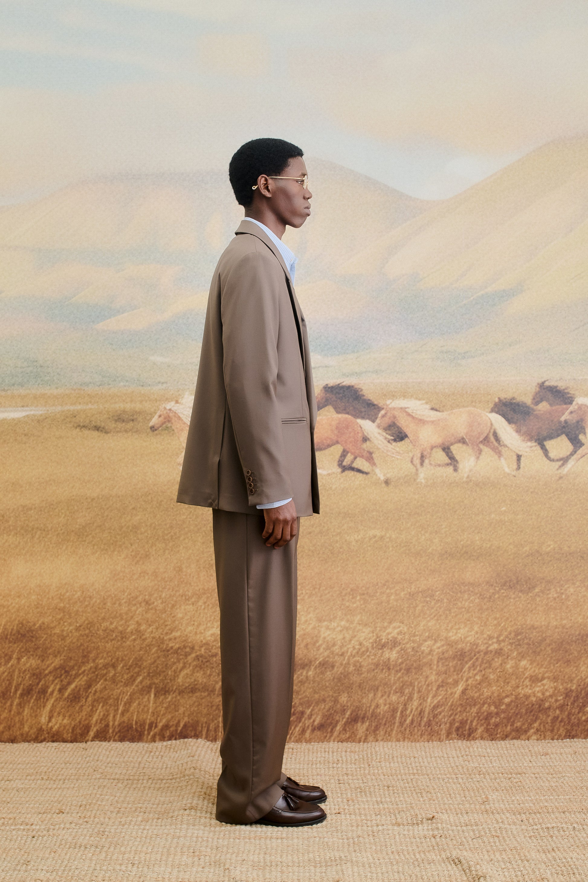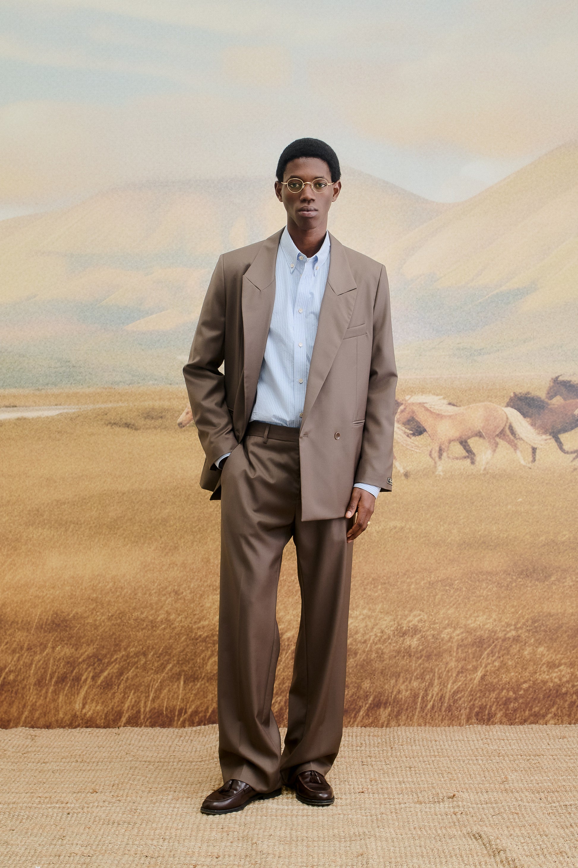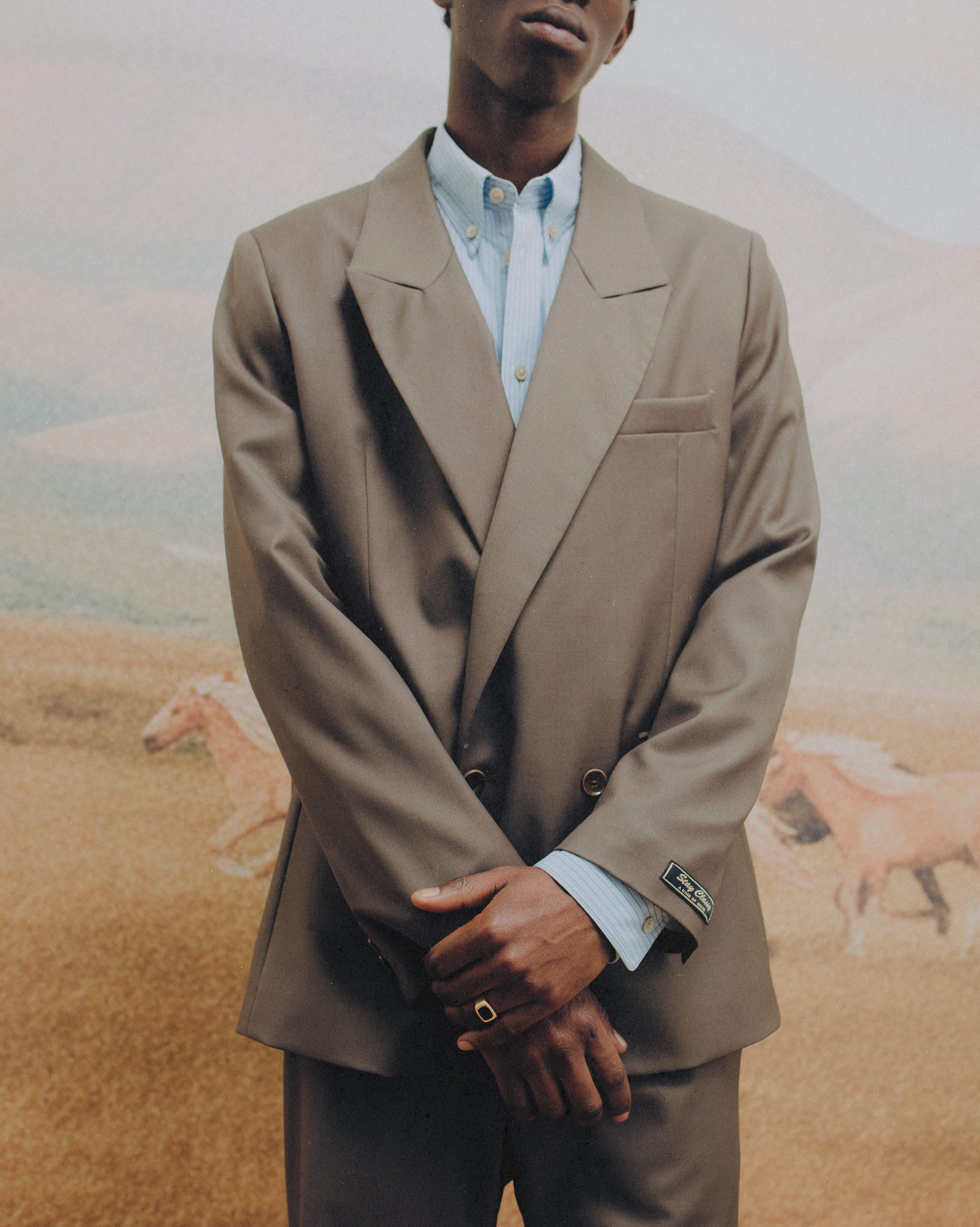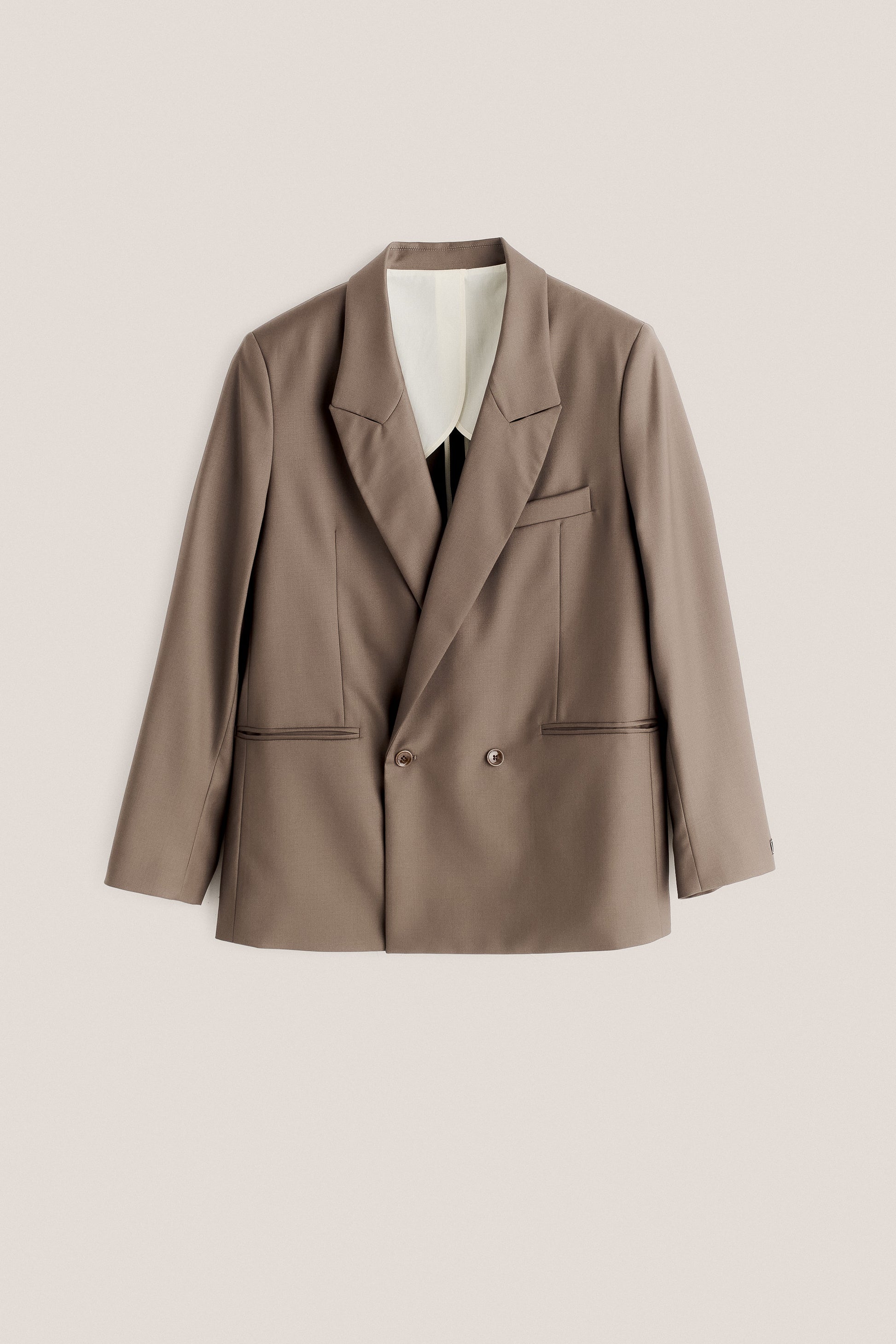 PRODUCT: The Relaxed Double-buttoned blazer features an oversized, early-90s silhouette with a slightly extended shoulder line, elongated length, and an easy, laid-back fit. Tailored with double back slits and designed to pair effortlessly with wide-cut styles like our tailored wide trousers, Piero Pants, or Samurai Trousers. Completed with our signature “stay classy” label at the sleeve.