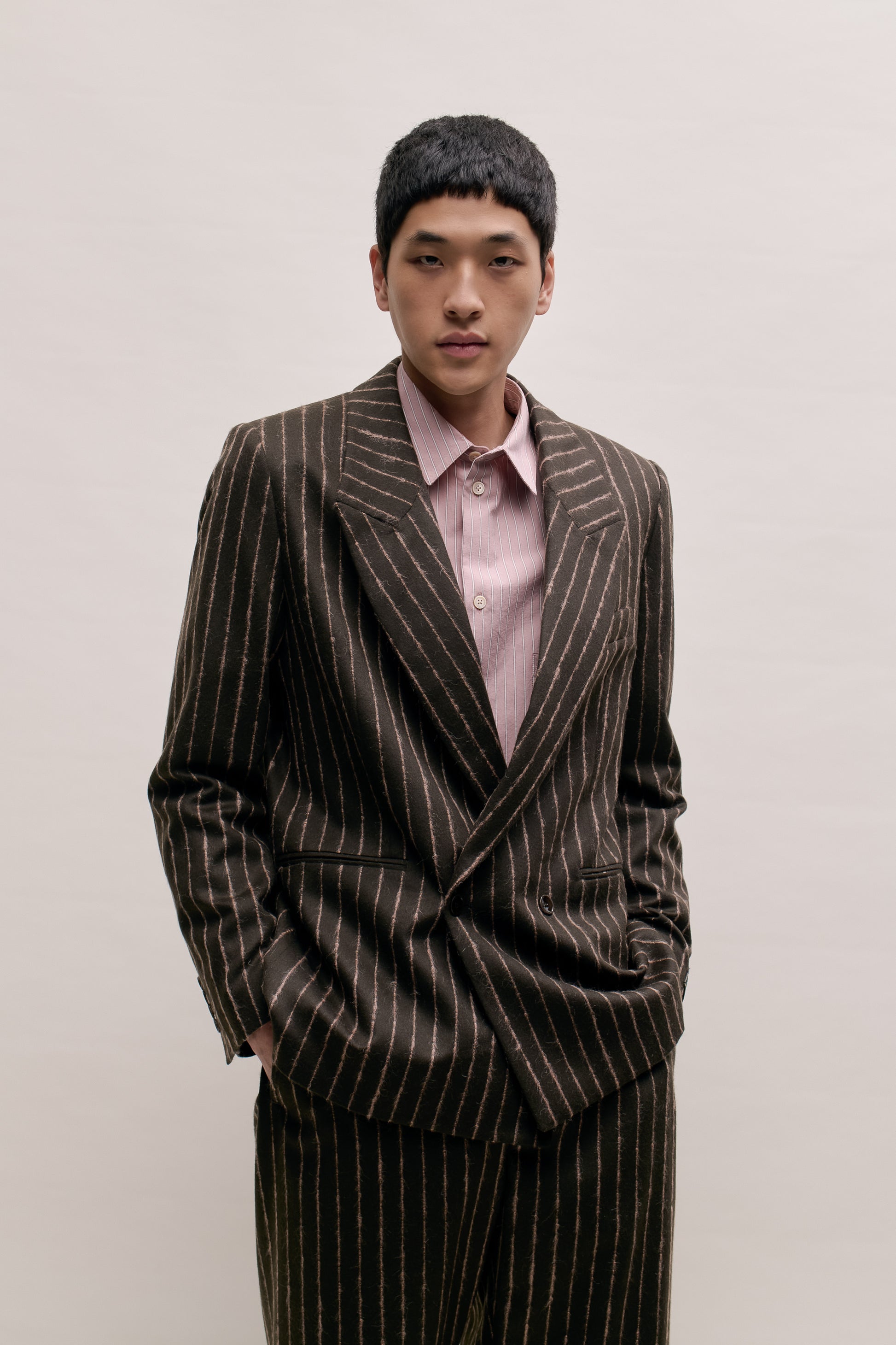 PRODUCT: The Relaxed Double-Buttoned Blazer features an oversized, early-90s silhouette with a slightly extended shoulder line, elongated length, and an easy, laid-back fit. Tailored with double back slits and designed to pair effortlessly with wide-cut styles like our tailored wide trousers, piero pants, or samurai trousers. Completed with our signature “stay classy” label at the sleeve.