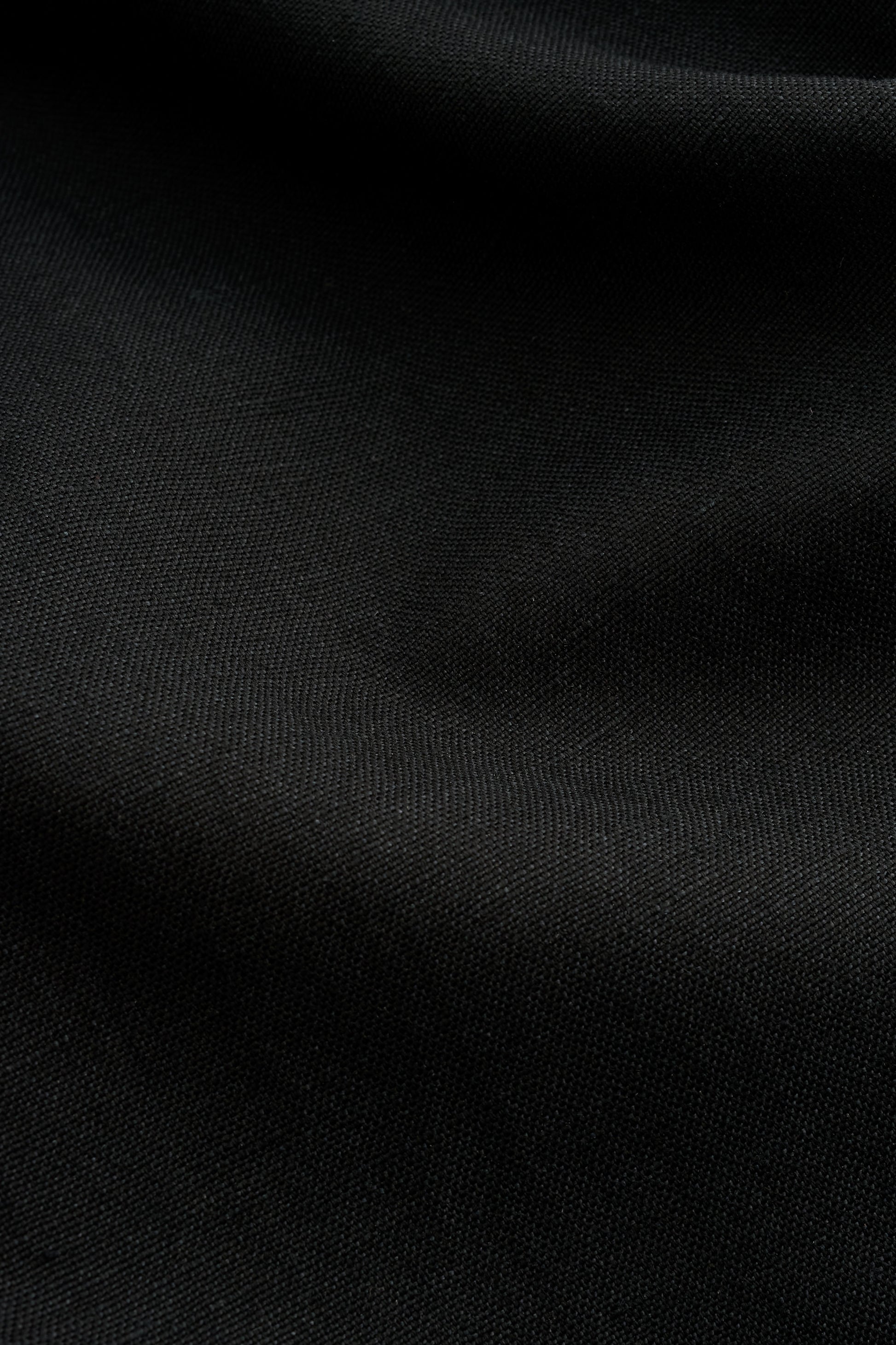FABRIC: This worsted wool and linen blend fabric has a soft, light hand feel with a refined yet natural texture. The linen’s characteristic surface thickening adds subtle visual depth, while the worsted wool keeps the fabric smooth and clean in drape for a sharp, elegant silhouette.