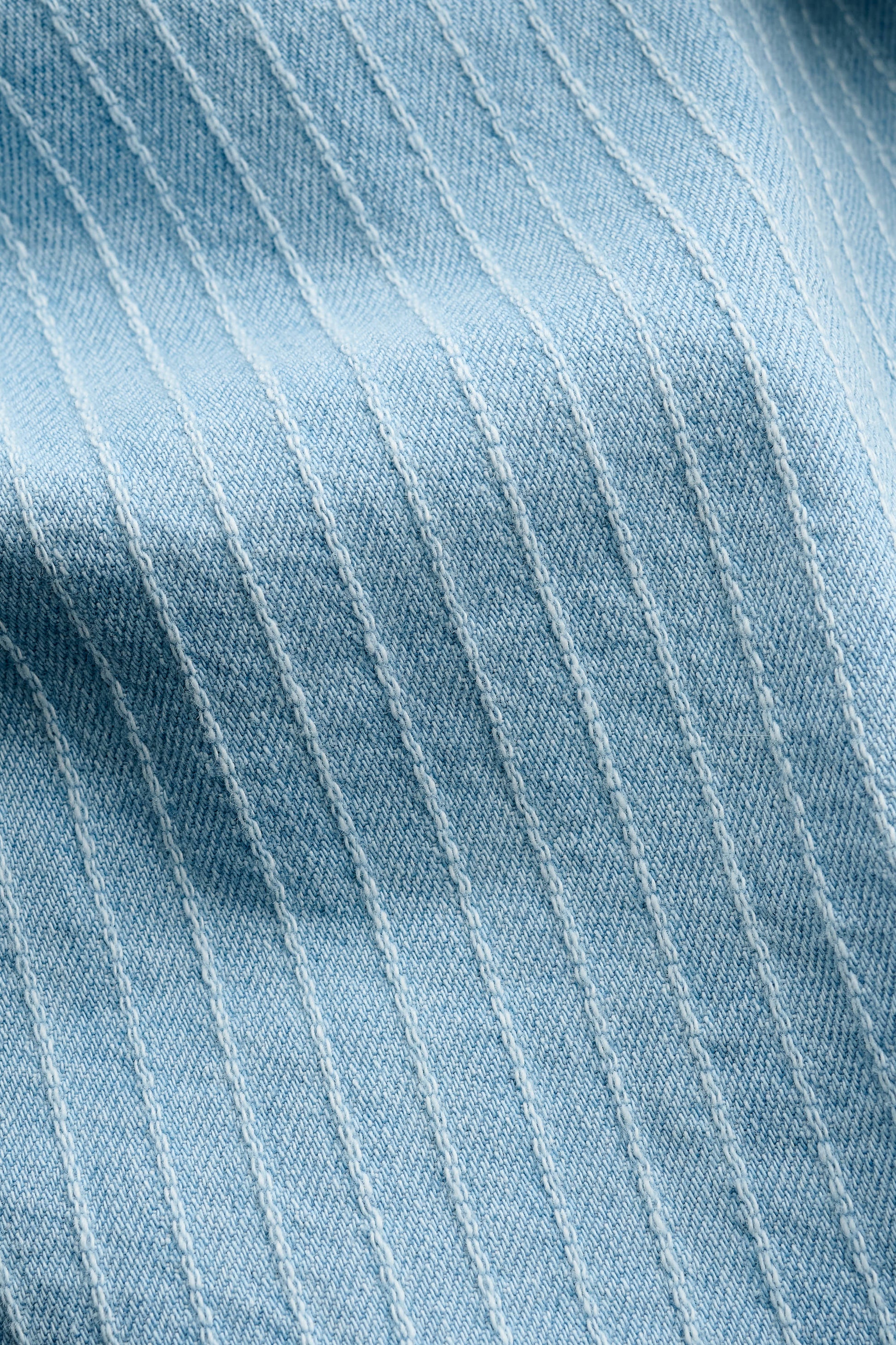 FABRIC: Made in Italy, this mid-weight light blue denim features subtle white pinstripes and is crafted from organic cotton. The medium pure indigo with a washed finish adds depth and character, while the soft hand feel ensures relaxed, timeless elegance.