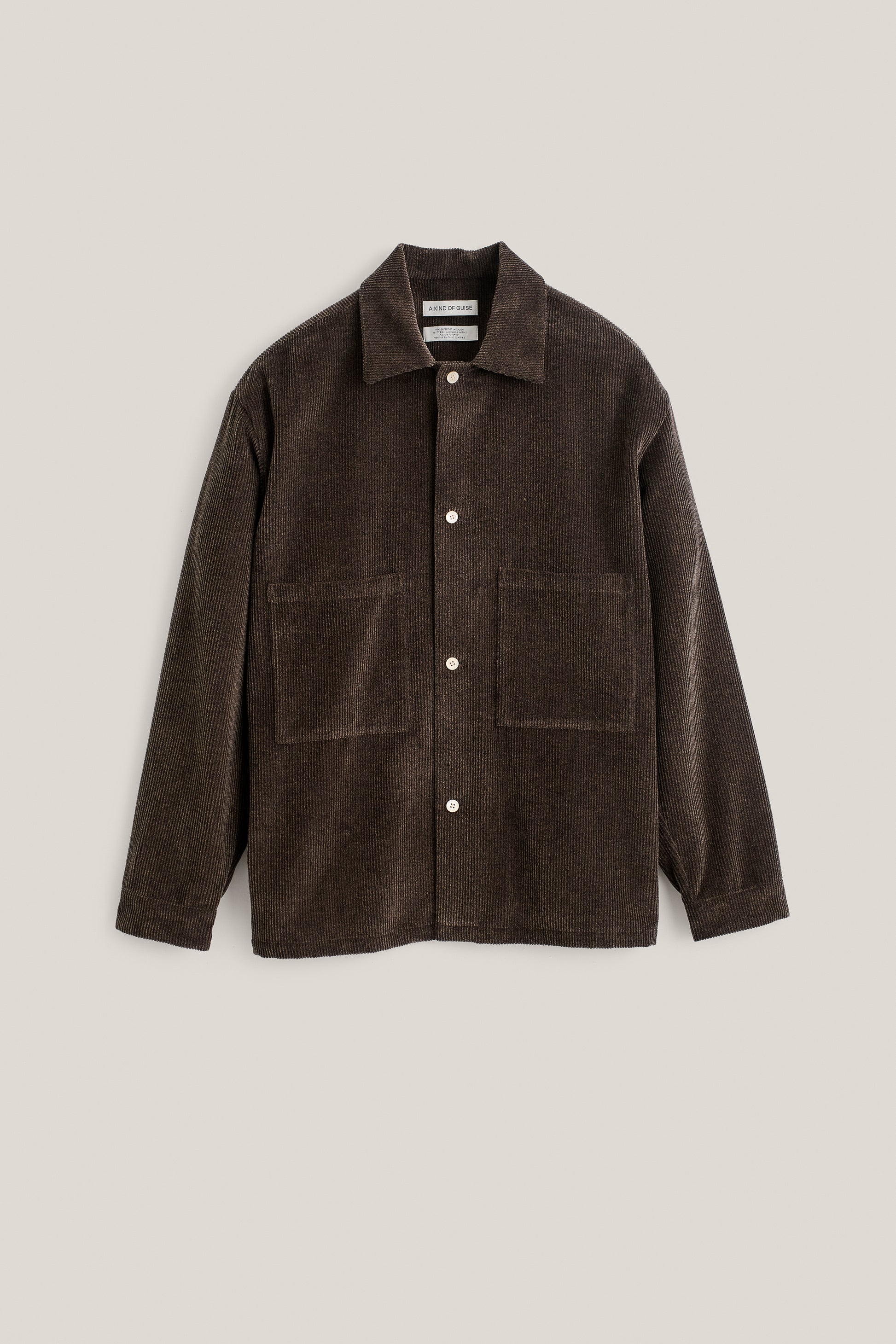 PRODUCT: The Sayan Shirt Jacket with an oversized fit features a spread collar, two front patch pockets and adjustable sleeve cuffs.