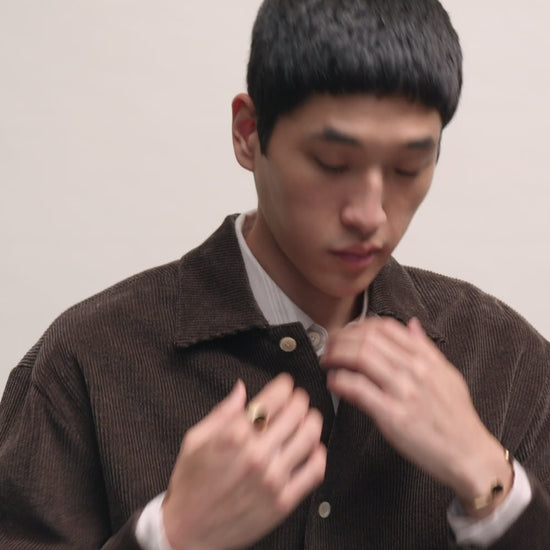 FABRIC: A cotton corduroy fabric with a soft ribbed texture and a slightly melange color effect, adding depth and a subtle, tonal variation to the surface.