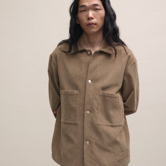 FABRIC: A cotton corduroy fabric with a soft ribbed texture and a slightly melange color effect, adding depth and a subtle, tonal variation to the surface.