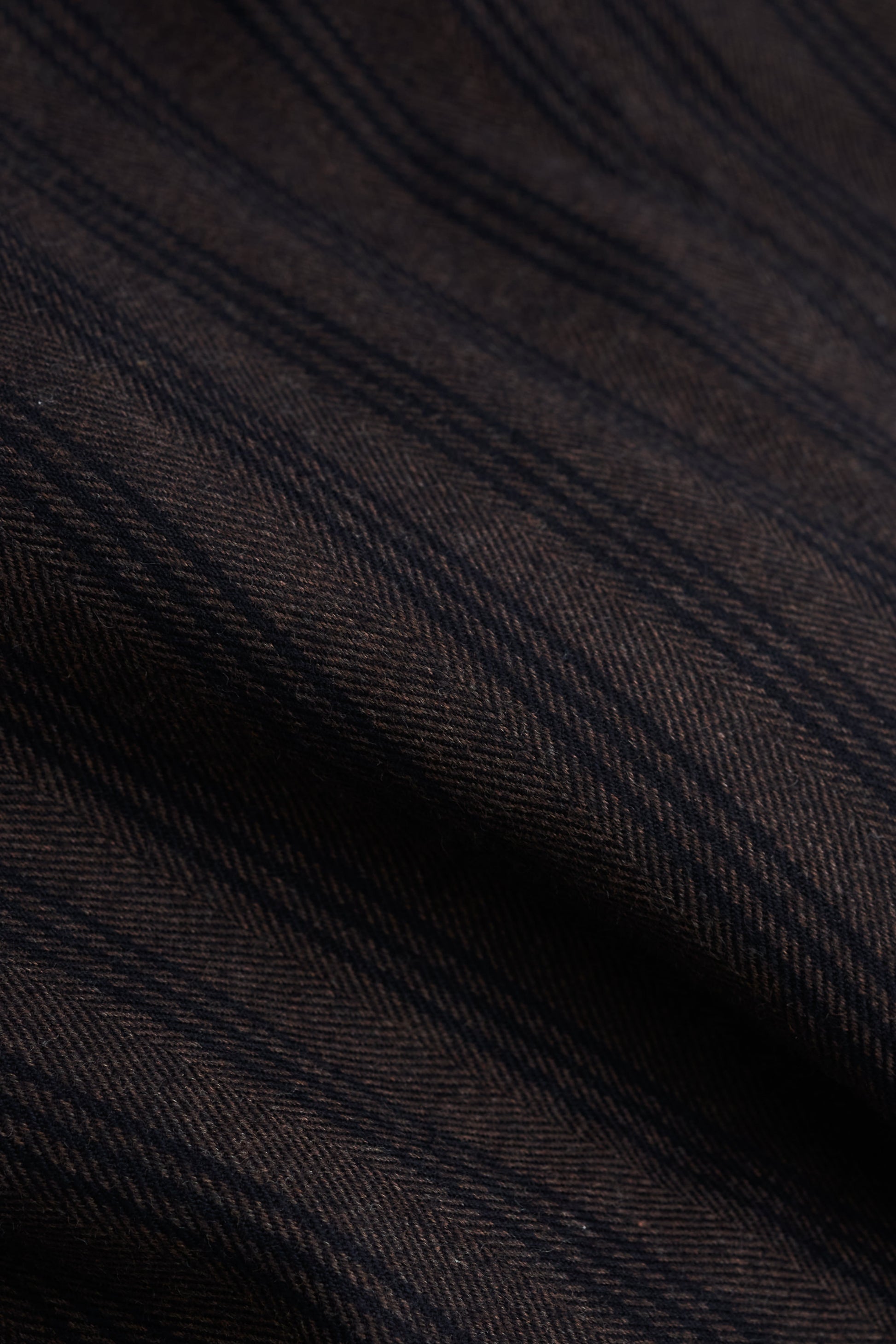 FABRIC: A cotton–lyocell flannel with a super soft handfeel and a gentle, brushed surface. Woven in a herringbone pattern, the fabric has a refined texture and fluid drape, with subtle stripes that enhance its cozy character.