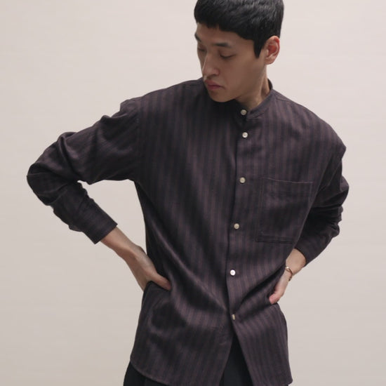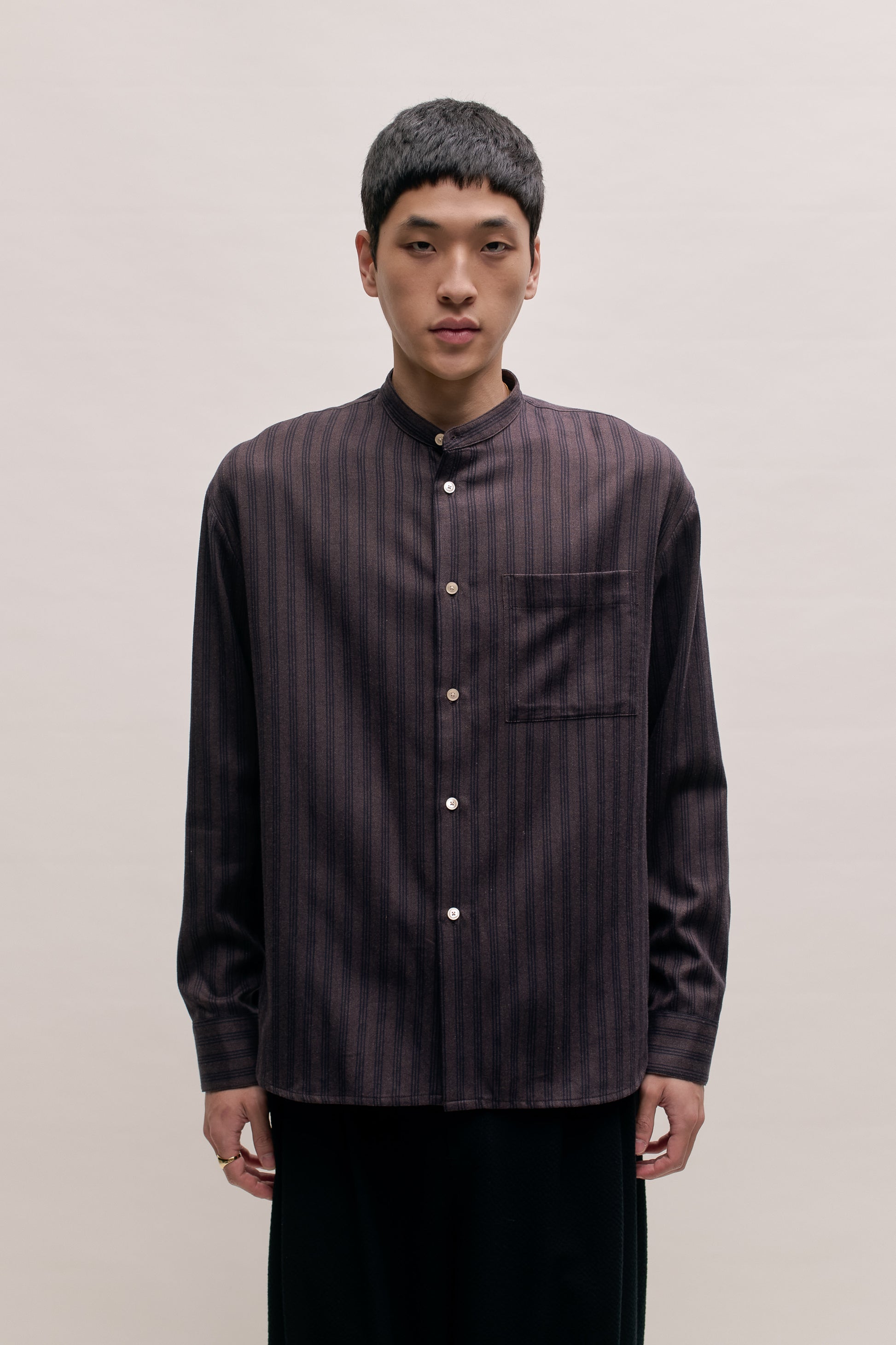 PRODUCT: The Seifur Shirt features a slightly oversized silhouette with a refined stand-up collar and a front patch pocket. It comes with an adjustable cuff and slightly rounded hemline.