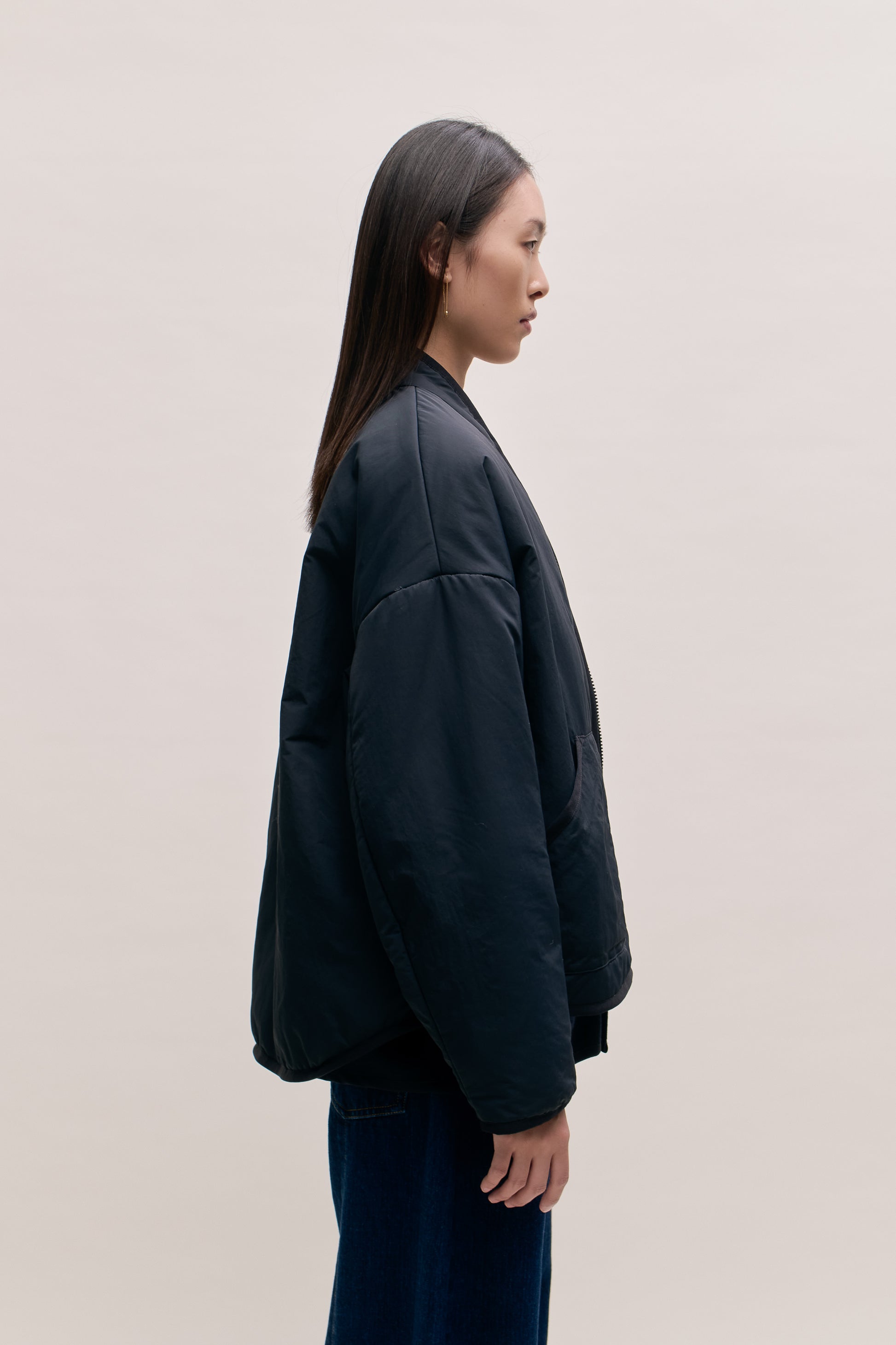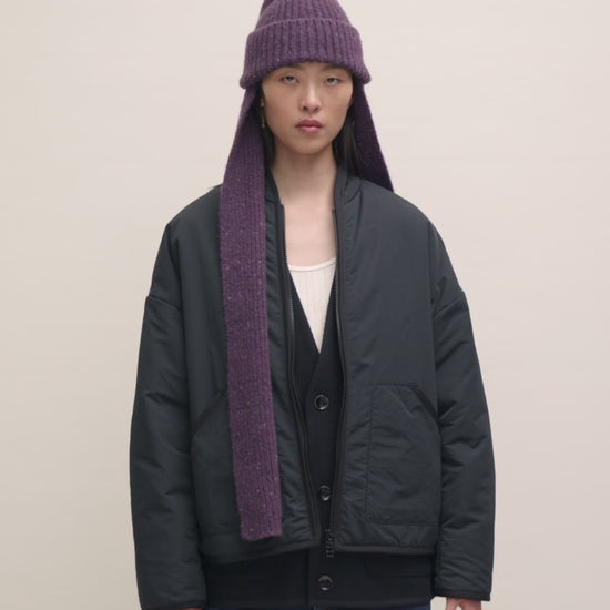 PRODUCT: The Solveig Jacket is padded with Cashpad® - an innovative insulation made from recycled cashmere and wool fibers. The jacket comes in a slightly a-shaped fit with dropped shoulders and a high stand-up collar. It features handwarming patch pockets, front 2-way zip closure, adjustable elastic cord at the hem and an additional inner pocket.