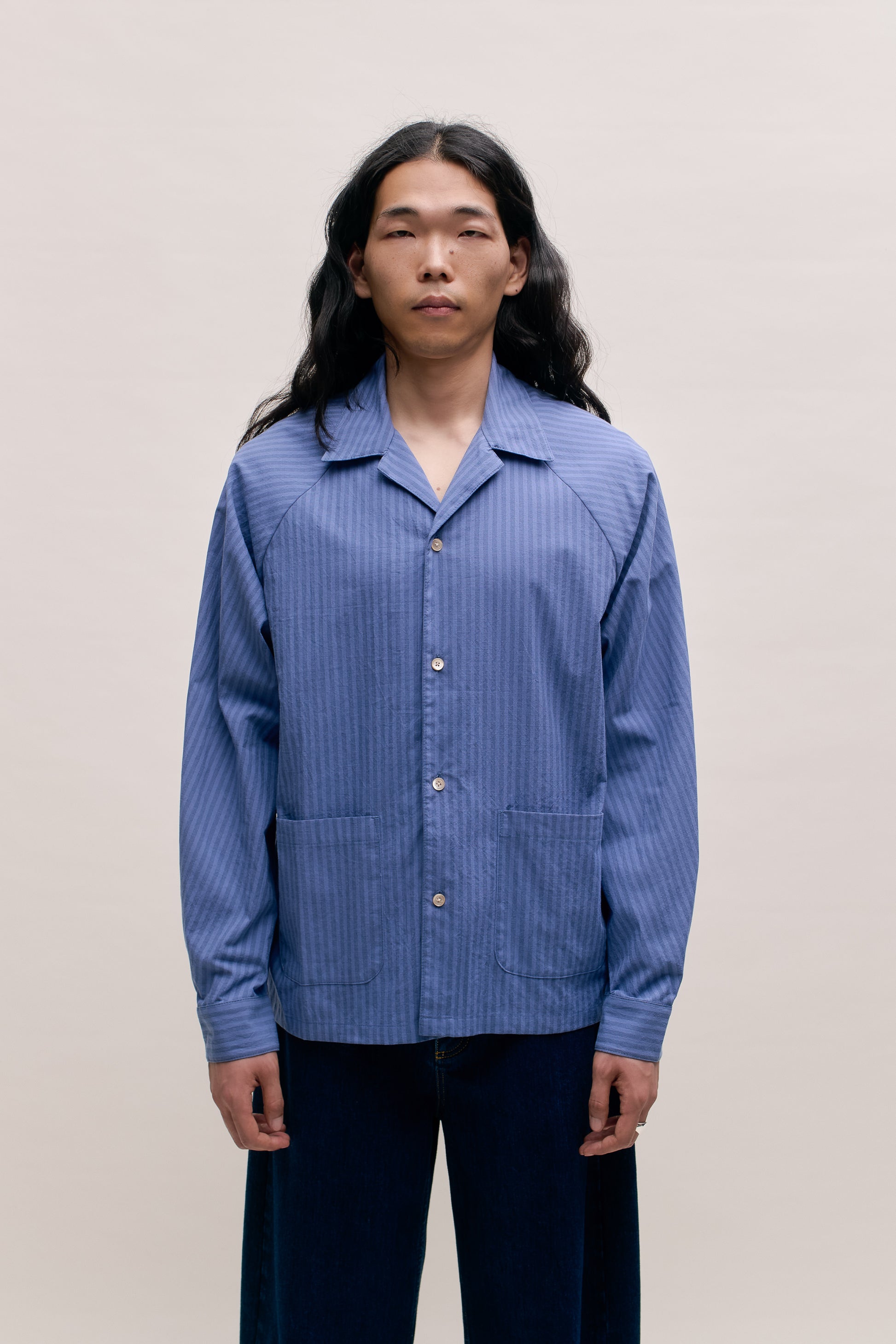 €195PRODUCT: This raglan-sleeve shirt with a relaxed fit combines a rounded spread collar, front patched pockets and a straight hemline. A nice detail is the split yoke with aligned stripe pattern.