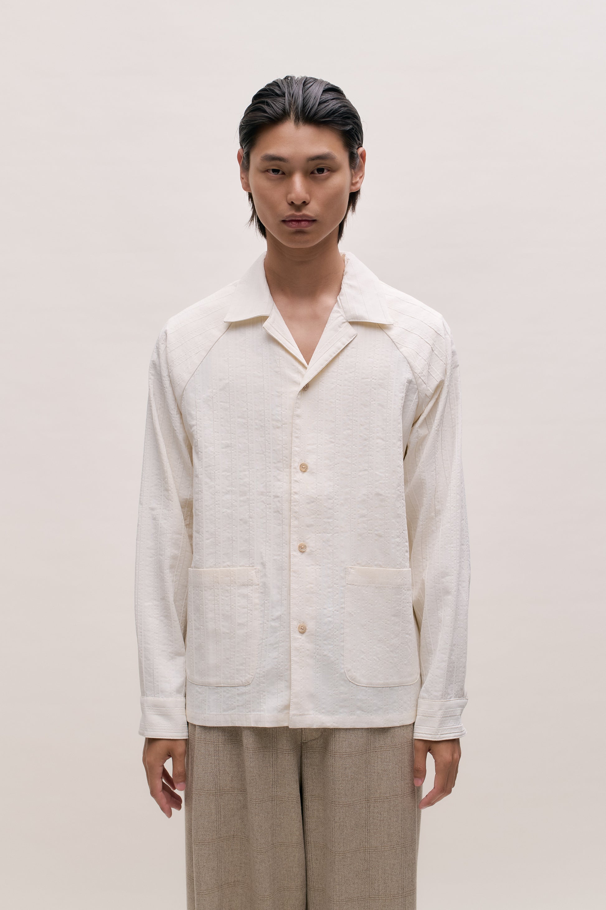€255PRODUCT: This raglan-sleeve shirt with a relaxed fit combines a rounded spread collar, front patched pockets and a straight hemline. A nice detail is the split yoke with aligned stripe pattern.