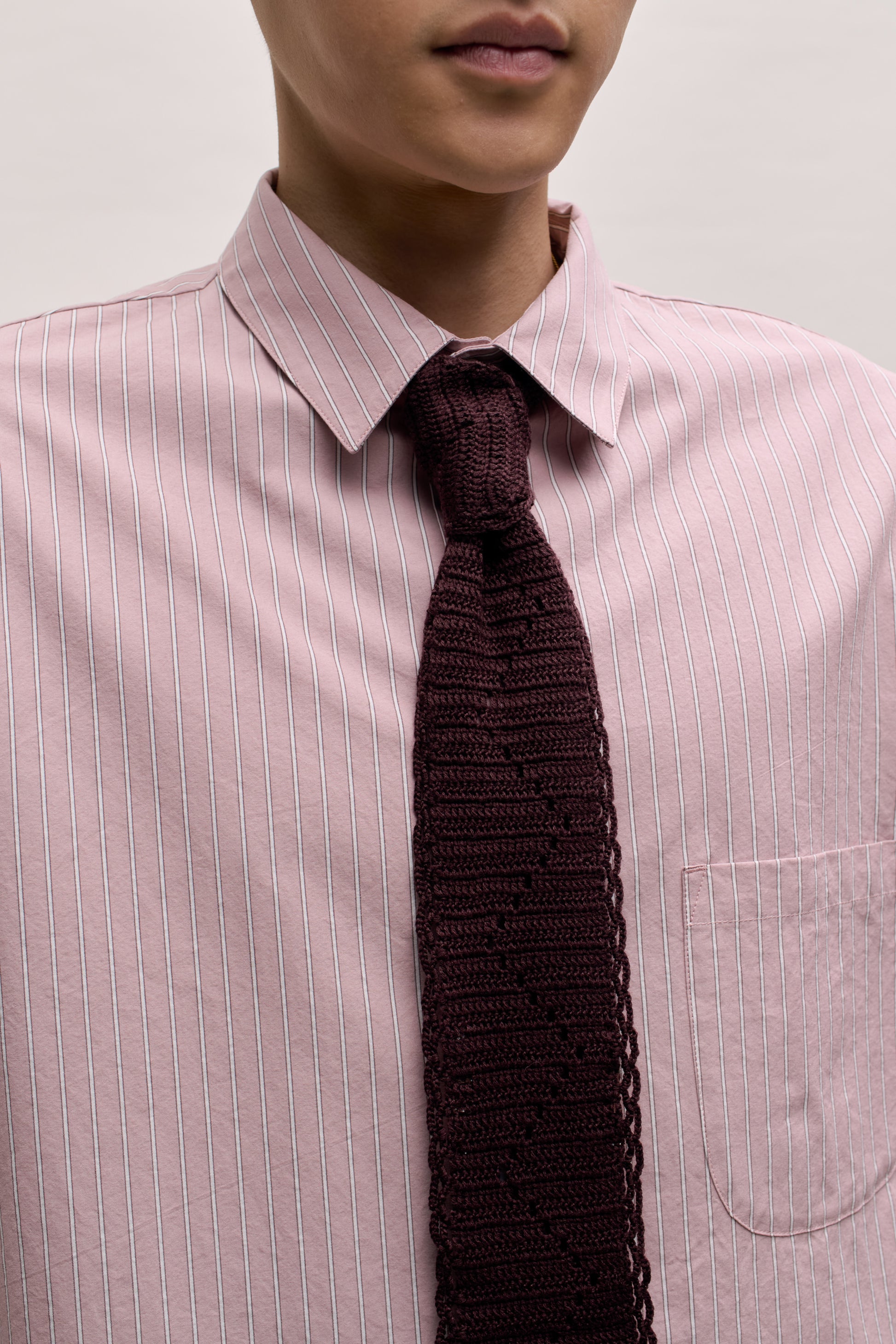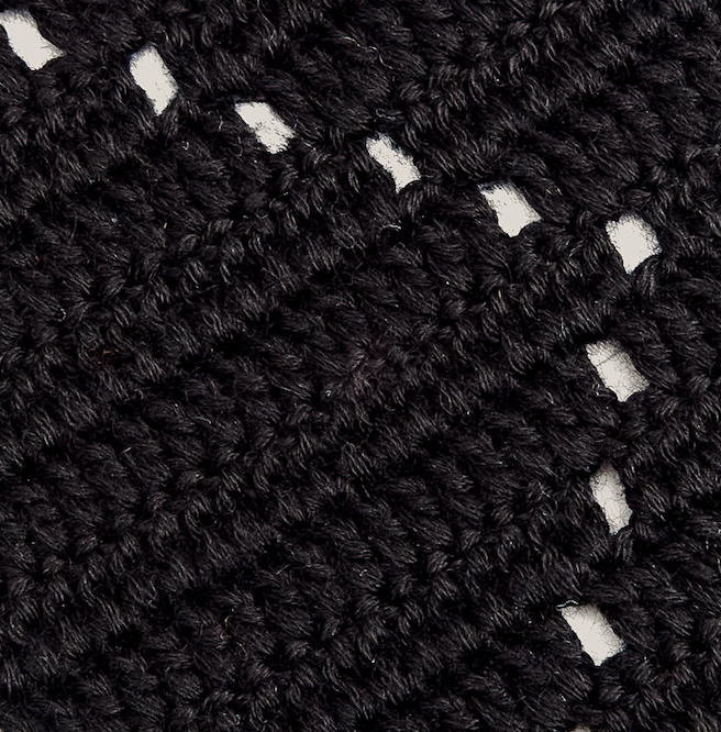 €126PRODUCT: A Handmade Crocheted tie crafted from yarn, featuring a textured pattern and a slim, rectangular shape. Designed to be worn as neckwear, it offers a unique, artisanal alternative to traditional fabric ties.