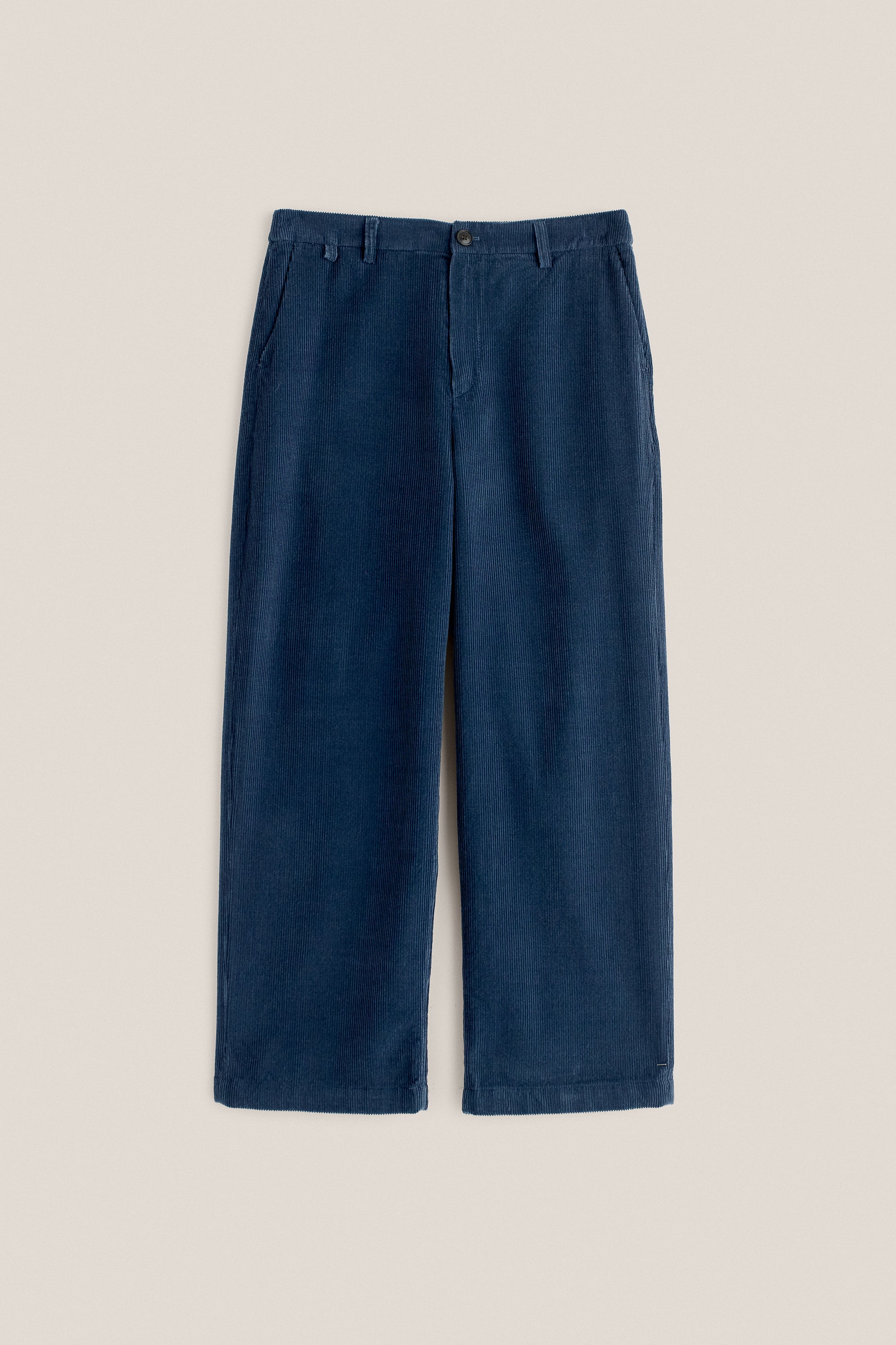 PRODUCT: Our chino trousers with a regular fit, straight leg, two slanted front pockets and two welt pockets on the back, one with button closure.