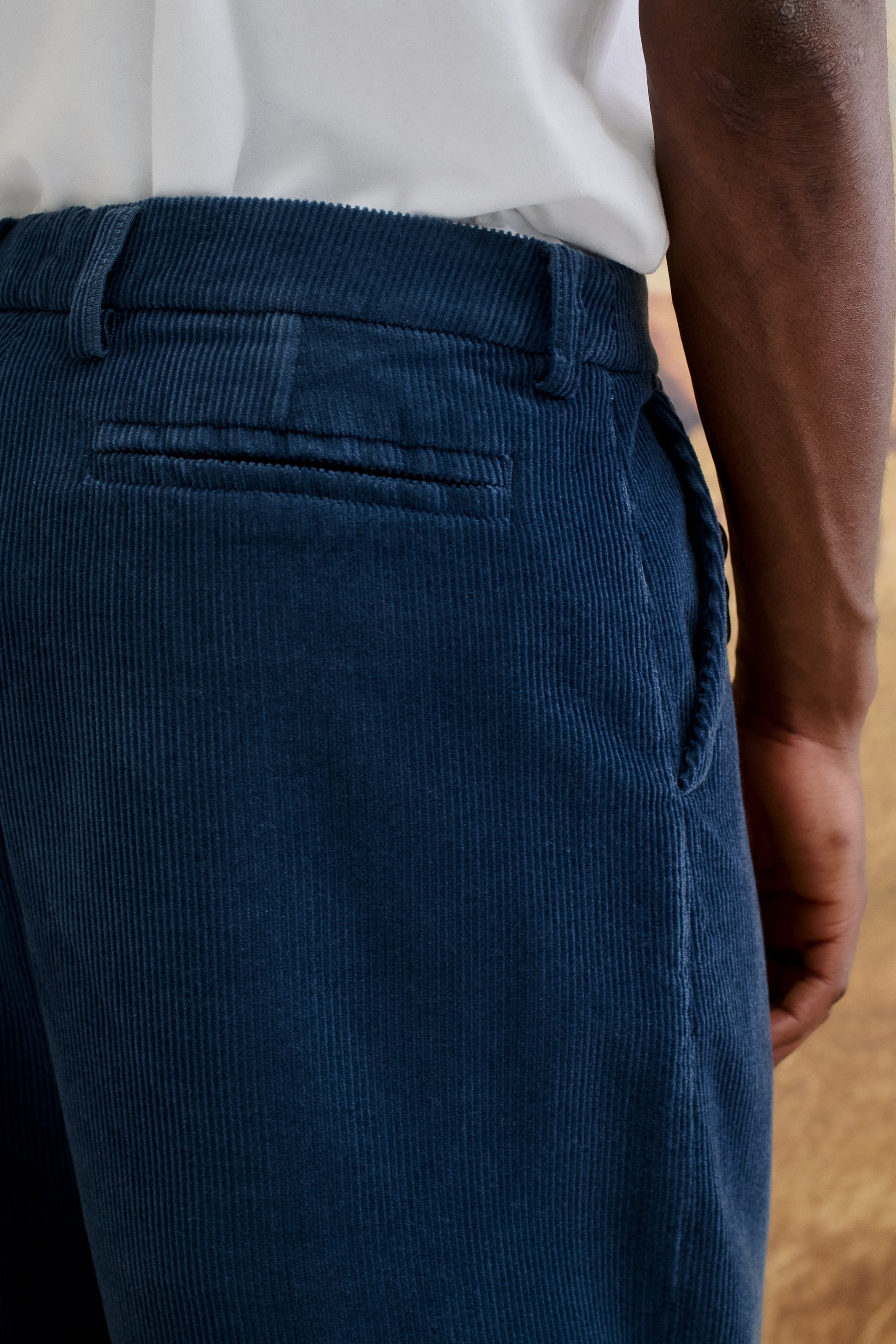 FABRIC: A special fabric: a “Made in Germany” corduroy crafted from 100% virgin wool. This classic corduroy offers a firm hand and a structured feel, with pronounced ribs and a dense weave that give it a confident, modern presence.